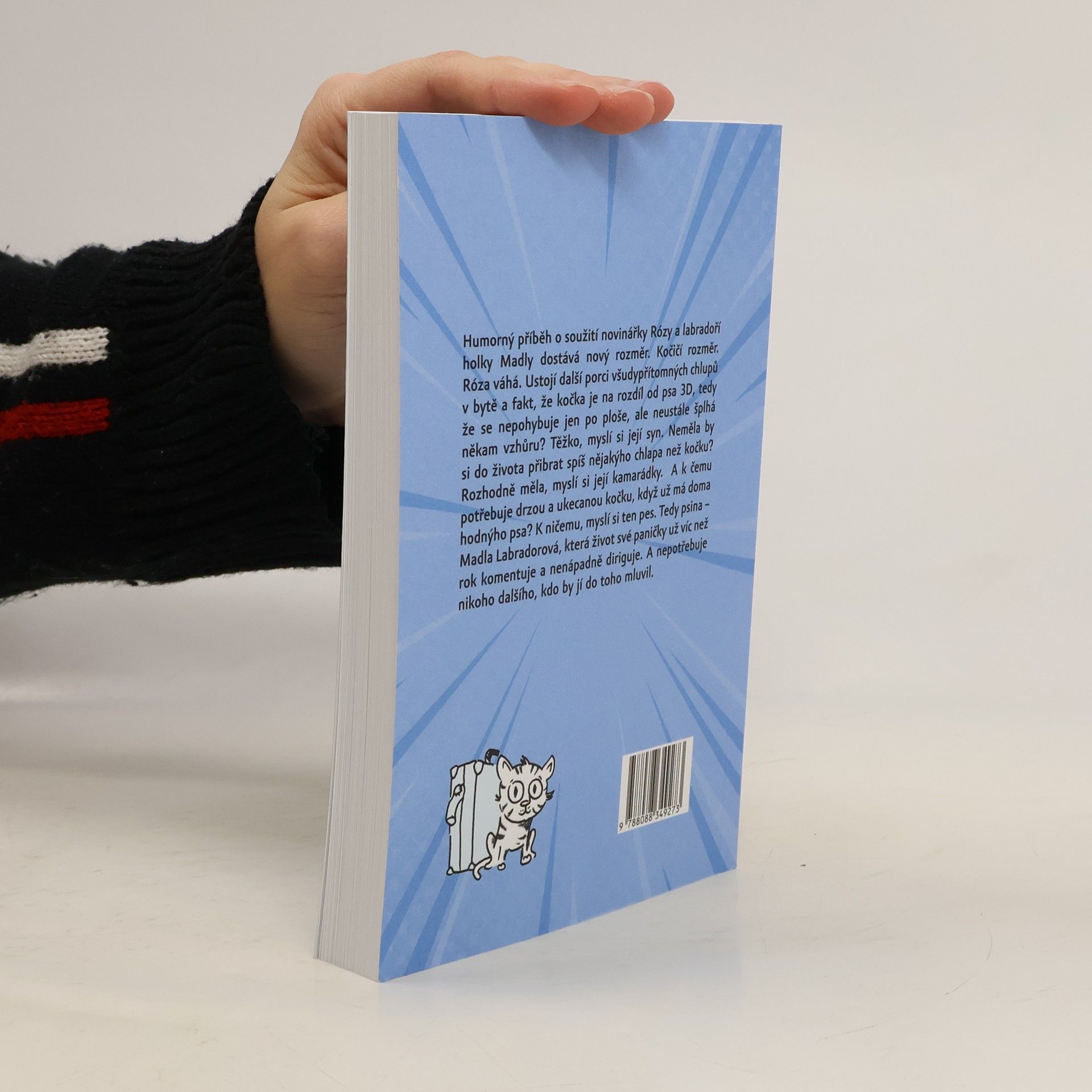 Humorný příběh soužití novinářky Rózy a labradoří holky Madly dostává nový rozměr. Kočičí rozměr. Róza váhá. Ustojí další porci všudypřítomných chlupů v bytě a fakt, že kočka je na rozdíl od psa 3D, tedy že se nepohybuje jen po ploše, ale neustále šplhá někam vzhůru? Těžko, myslí si její syn. Neměla by si do života přibrat spíš nějakýho chlapa než kočku? Rozhodně měla, myslí si její kamarádky. A k čemu potřebuje drzou a ukecanou kočku, když už má doma hodnýho psa? K ničemu, myslí si ten pes. Tedy psina – Madla Labradorová, která život své paničky už víc než rok komentuje a nenápadně diriguje. A nepotřebuje nikoho dalšího, kdo by jí do toho mluvil.