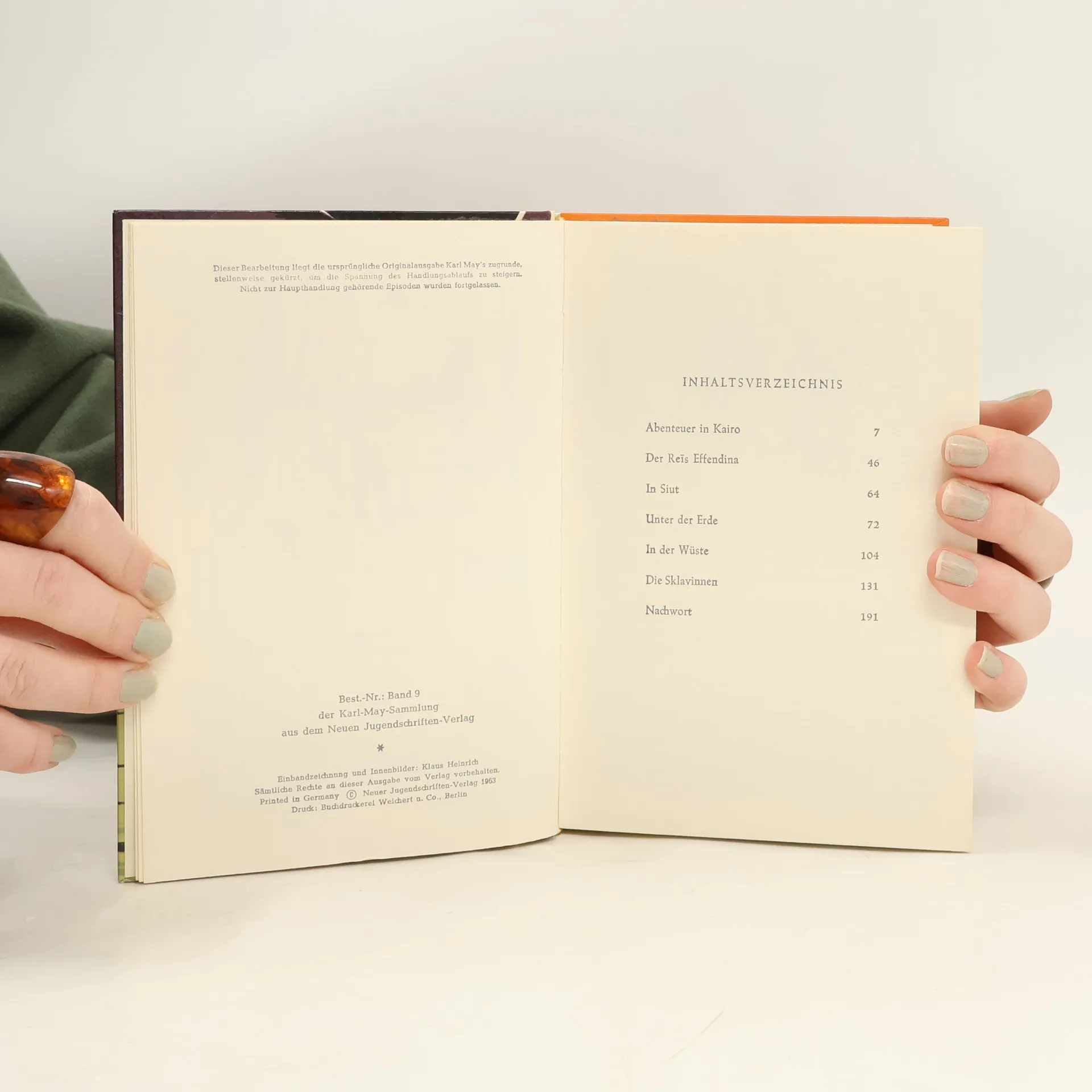 Kairo ist Ausgangspunkt dieser fesselnden Orienttrilogie. Sie schildert eines der schlimmsten Kapitel der Weltgeschichte: das Problem des Sklavenhandels. Bis in die Nubische Wüste verfolgen Kara Ben Nemsi und sein Diener Ben Nil zusammen mit dem "Reis Effendina" einen Sklavenzug.
