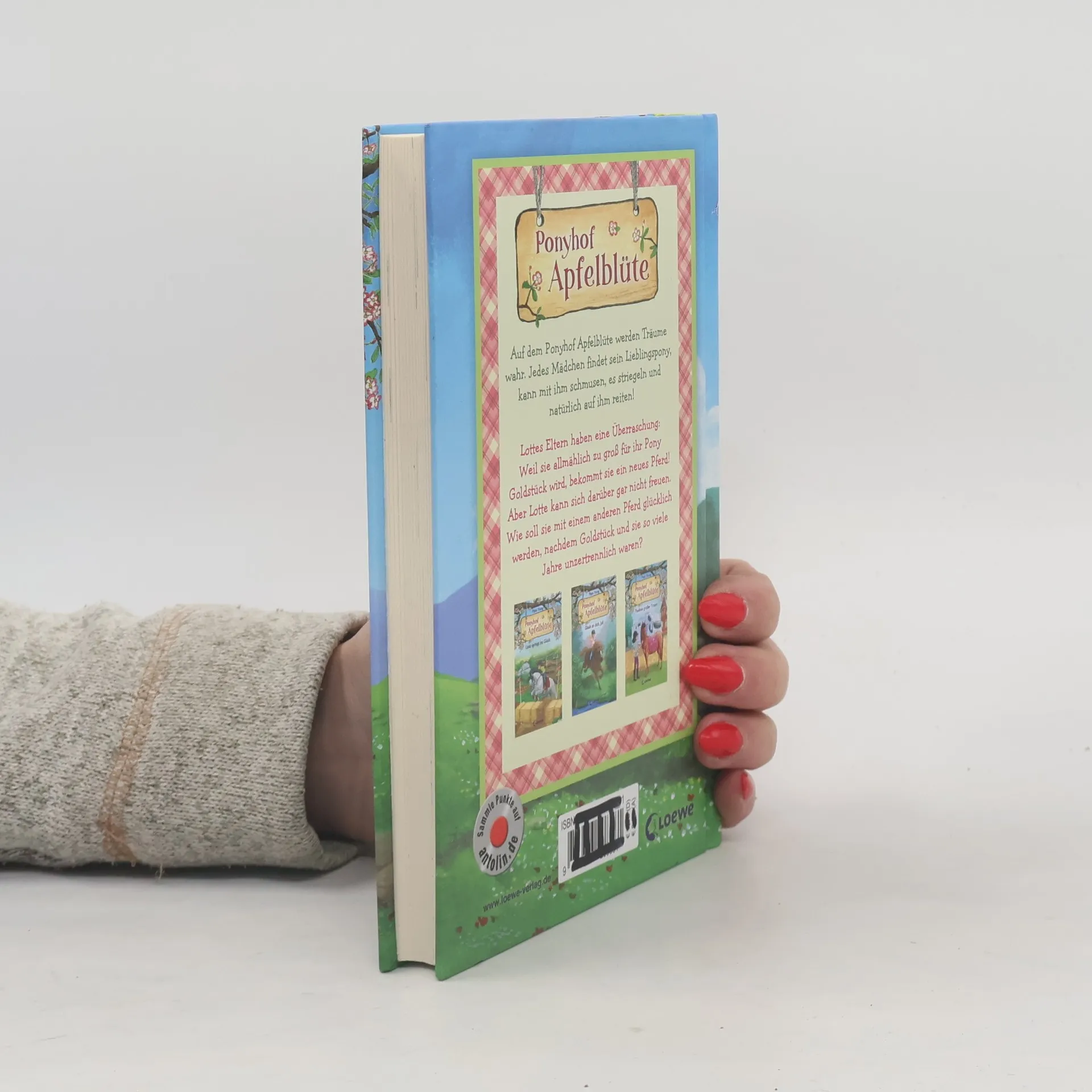 Lottes Eltern haben eine Ü Weil sie allmählich zu groß für ihr Pony Goldstück wird, bekommt sie ein neues Pferd! Aber Lotte kann sich darüber gar nicht freuen. Wie soll sie mit einem anderen Pferd glücklich werden, nachdem Goldstück und sie so viele Jahre unzertrennlich waren?Auf dem Ponyhof Apfelblüte werden Träume wahr. Jedes Mädchen findet sein Lieblingspony, kann mit ihm schmusen, es striegeln und natürlich auf ihm reiten!Freundschaften, süße Ponys und spannende Wettkämpfe – der Alltag auf dem Reiterhof wird einfach nie langweilig. Die Kinderbuchreihe mit vielen liebevollen Illustrationen vermittelt nebenbei Wissenswertes über Ponys und ist besonders für Mädchen ab 8 Jahren geeignet. Der Titel ist auf Antolin gelistet.