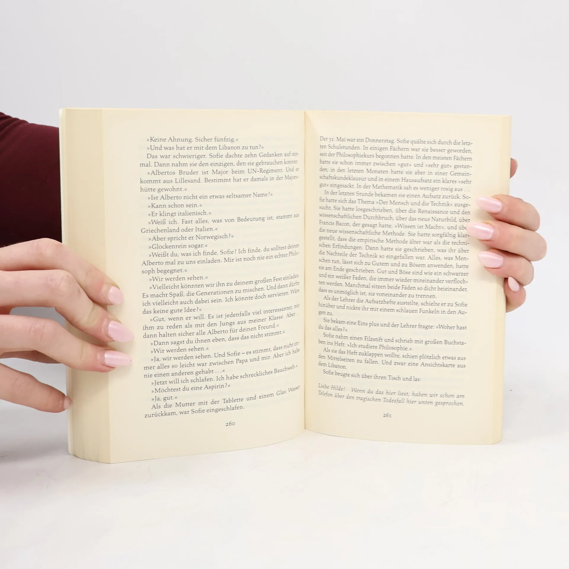 Weg in die geheimnisvolle Gedankenwelt »Ein dickes Buch, mit spitzen Fingern angefaßt und mit Begeisterung zugeklappt: ein großer Wurf im wört-lichen wie übertragenen Sinn.« Die Zeit Mysteriöse Briefe landen im Briefkasten der 15jährigen Sofie Amundsen in Oslo. Was sollen diese Fragen: »Wer bist du?«, »Was ist ein Mensch?« und »Woher kommt die Welt?«. Sofie ist irritiert. Die Briefe werden ausführlicher und entführen sie in die abenteuerliche und geheimnisvolle Gedankenwelt der großen Philosophen. Ihr unbekannter Briefeschreiber erzählt Sofie die Geschichte Europas, der Antike, des Mittelalters und der Renaissance und dann nimmt die Geschichte eine unglaubliche Wendung.