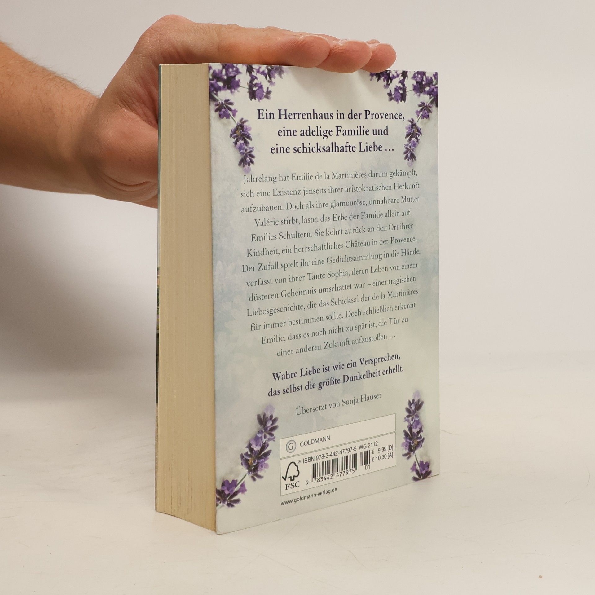 Ein Herrenhaus in der Provence, eine adelige Familie und eine schicksalhafte Liebe in dunklen Zeiten. Jahrelang hat Emilie de la Martinières darum gekämpft, sich eine Existenz jenseits ihrer aristokratischen Herkunft aufzubauen. Doch als ihre glamouröse, unnahbare Mutter Valérie stirbt, lastet das Erbe der Familie allein auf Emilies Schultern. Sie kehrt zurück an den Ort ihrer Kindheit, ein herrschaftliches Château in der Provence. Der Zufall spielt ihr eine Gedichtsammlung in die Hände, verfasst von ihrer Tante Sophia, deren Leben von einem düsteren Geheimnis umschattet war – einer tragischen Liebesgeschichte, die das Schicksal der de la Martinières für immer bestimmen sollte. Doch schließlich erkennt Emilie, dass es noch nicht zu spät ist, die Tür zu einer anderen Zukunft aufzustoßen …