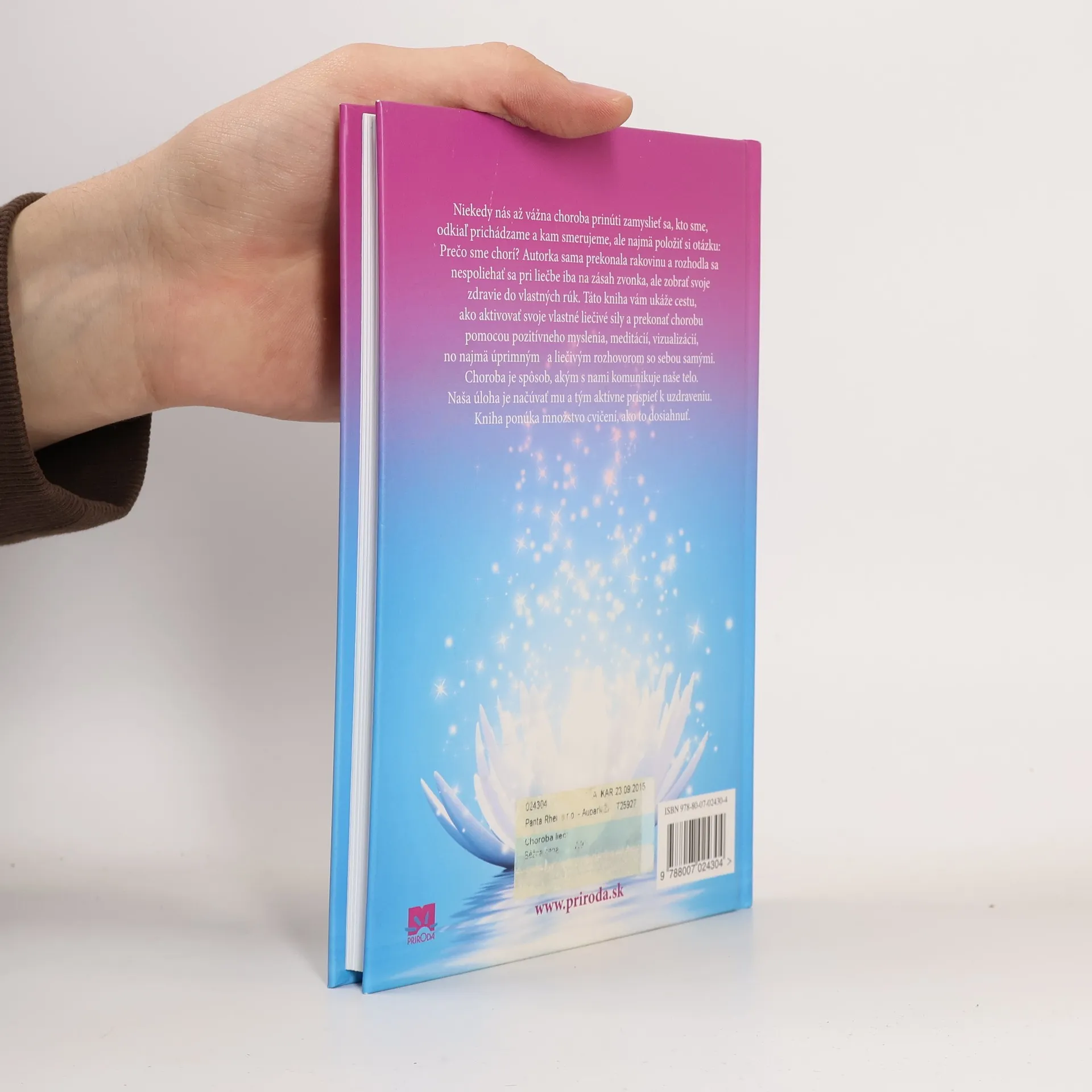 Choroba je tu preto, aby nás vyliečila zo zla. Hippokrates Niekedy nás až vážna choroba prinúti zamyslieť sa, kto sme, odkiaľ prichádzame a kam smerujeme, ale najmä – prečo sme chorí. Autorka, ktorá sama prekonala rakovinu, sa rozhodla nespoliehať pri liečení iba na zásah zvonku, ale zobrať svoje zdravie do vlastných rúk. Táto kniha vám ukáže cestu, ako aktivovať vlastné liečivé sily a prekonať chorobu pomocou pozitívneho myslenia, meditácií, vizualizácií, ale najmä úprimným a liečivým rozhovorom so sebou samým. Choroba je spôsob, ako s nami komunikuje naše telo, a našou úlohou je načúvať mu a tým aktívne prispieť k uzdraveniu. Kniha ponúka aj množstvo cvičení, ako to dosiahnuť.