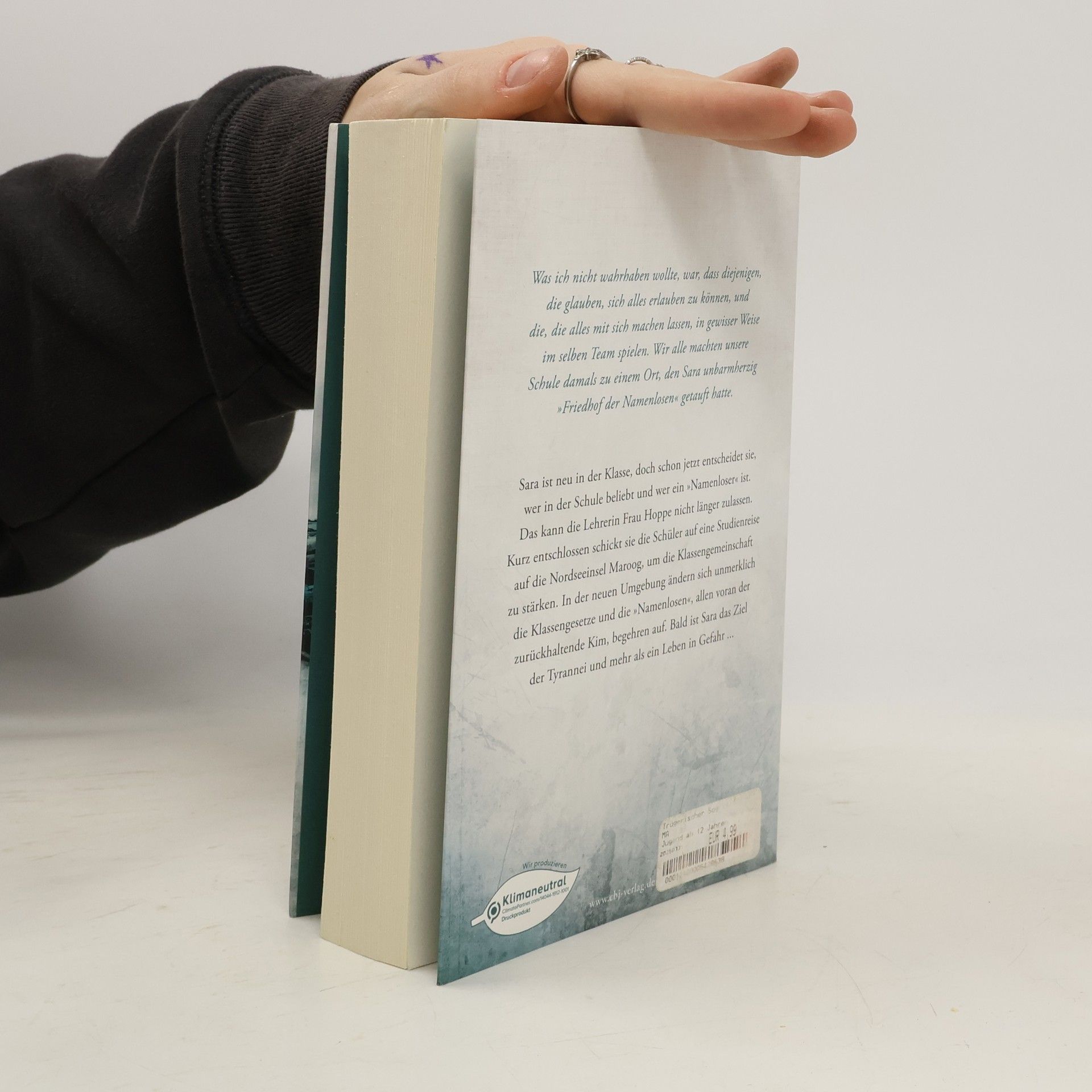 Wer oben stand, wird unten sein – die Namenlosen begehren aufDer jungen Geschichtslehrerin Frau Hoppe reicht Sara, selbsternannte Fürstin der Klasse, entscheidet, wer in der Schule – von ihr nur »Friedhof der Namenlosen« genannt – beliebt und wer ein Namenloser ist. Kurz entschlossen schickt Frau Hoppe die Klasse auf eine Klassenreise auf die Nordseeinsel Maroog. Das den echten Friedhof der Namenlosen zu restaurieren und die Klassengemeinschaft zu stärken. Was sie nicht In der neuen Umgebung ändern sich auch die Klassengesetze und die Namenlosen, allen voran der zurückhaltende Kim, begehren auf. Bald ist Sara das Ziel der Tyrannei und mehr als ein Leben in Gefahr …