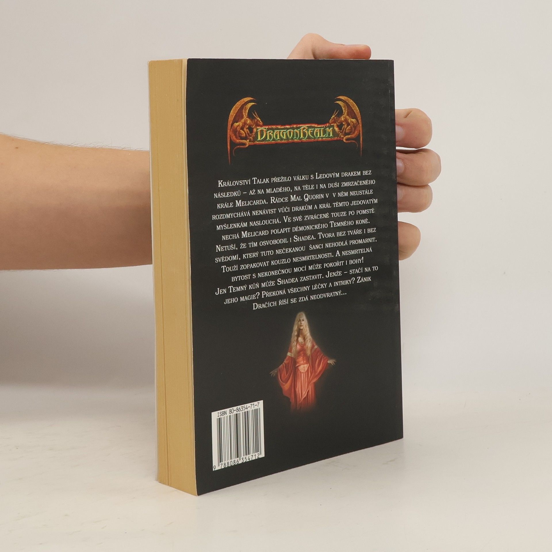 Bohaté horské království Talak přežilo válku s Ledovým drakem bez následků – až na mladého, na těle i na duši zmrzačeného krále Melicarda. Jeho záludný rádce Mal Quorin v v něm neustále rozdmychává nenávist vůči drakům a král těmto jedovatým myšlenkám naslouchá. Ve své zvrácené touze po pomstě nechá Melicard chytit démonského Temného koně. Netuší, že tím osvobodil i Shadea. Tvora bez tváře i bez svědomí, který tuto nečekanou šanci nehodlá promarnit. Shade ve své paměti překvapivě nachází stopy vedoucí ke kouzlu nesmrtelnosti, kterého ho kdysi uvrhlo do jeho tragické existence. Jenže tentokrát ví, kde se stala chyba a podruhé ji už nezopakuje. A nesmrtelná bytost s nekonečnou mocí může pokořit i bohy! Jen Temný kůň může Shadea zastavit. Jenže – stačí na to jeho magie? Překoná všechny léčky a intriky? Zánik Dračích říší se zdá neodvratný.