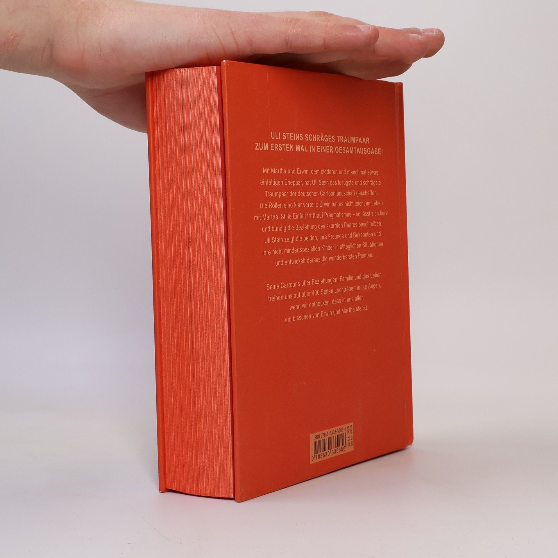 Erwin und Martha! Dieser zweite von den insgesamt drei Bänden der Uli Stein-Gesamtausgabe sollte in keinem Bücherschrank fehlen. Der erste Band ”Tierleben“ (erschienen im September 2020) und der dritte und letzte Band „Das schwarze Buch“ (erscheint im September 2021) komplettieren die Reihe. Diesmal tauchen Sie ab in den Alltag und das Familienleben von Erwin und Martha, dem lustigsten und schrägsten Traumpaar der deutschen Cartoonlandschaft. Die besten Cartoons und skurrilsten Erlebnisse der beiden, ihrer Freunde und Bekannten und ihrer nicht minder speziellen Kinder sind in diesem Band versammelt und schaffen es wieder einmal, uns Tränen vor Lachen in die Augen zu treiben. Liebevoll gestaltet und hochwertig ausgestattet, besticht dieses tolle Cartoonbuch mit seinem roten Farbschnitt, der coolen Metallic-Prägung und einer angenehm warmen Haptik. Sie machen diesen Band allein durch seine einzigartige Optik zu einem tollen Gesamtkunstwerk. Eine wahre Freude, es in Händen zu halten und stundenlang in den über 400 Seiten zu lesen, zu lachen und sich selbst, seinen Partner oder die Familie in den lustigen Cartoons wiederzuentdecken. Ein echtes „Must-have“ für jeden Uli Stein-Fan und ein perfektes Geschenk für jeden Cartoonfreund. Viel Spaß mit Erwin und Martha!