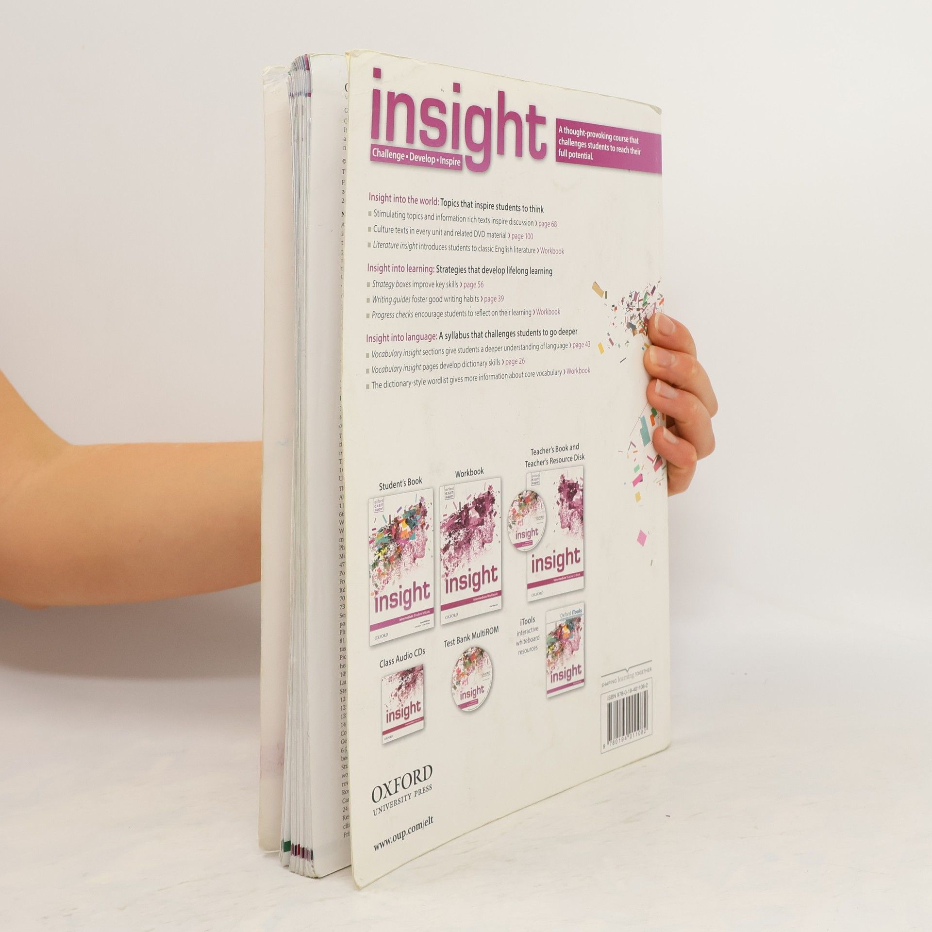 insight will challenge, develop and inspire your students.It will motivate and engage them with thought provoking topics and information rich texts which will challenge their opinions and inspire them to think critically about the world they live in.It will prepare them for a life of learning with a clear focus on developing their skills and autonomous learning habits.It will give your students a deeper awareness of how language works, furnishing them with not just the meaning of vocabulary but also the rules that govern its use, allowing your students to use it with confidence.
