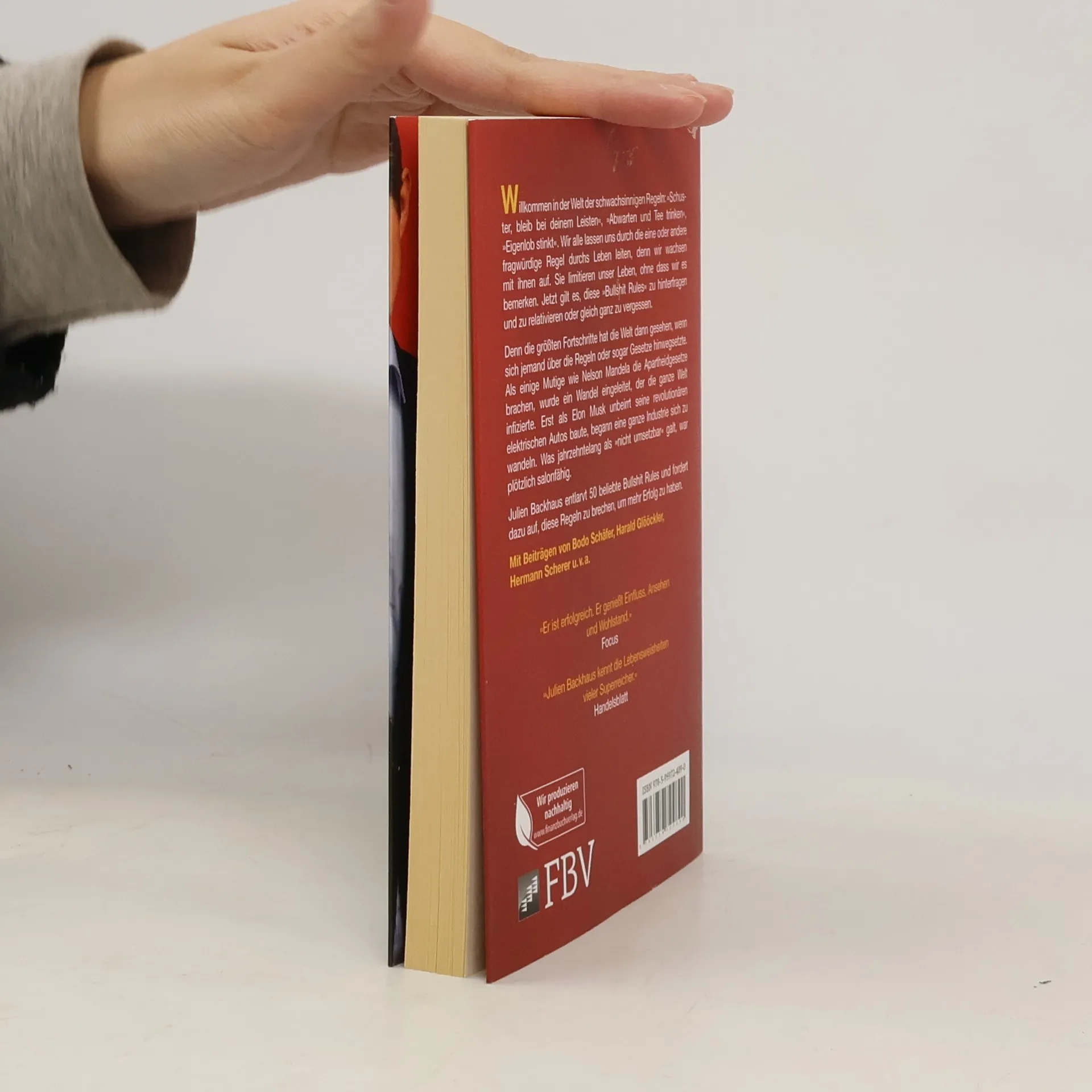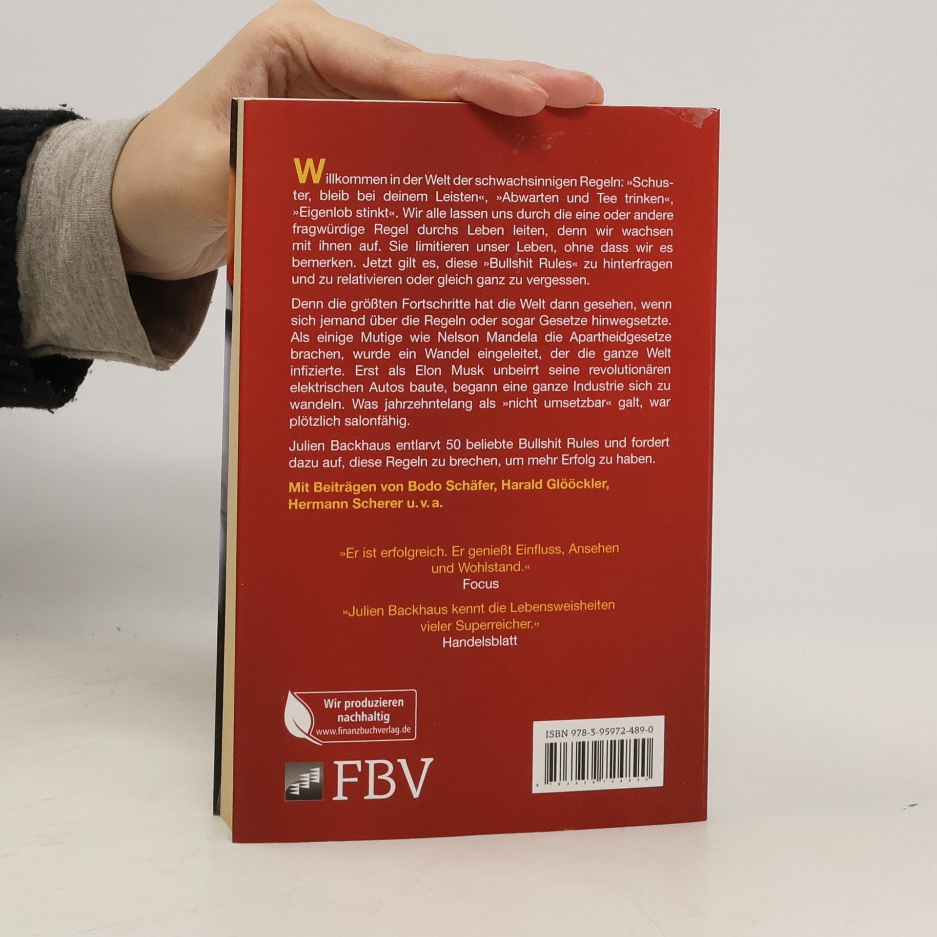 »Warum Sie für mehr Erfolg DIESE Regeln brechen sollten!« Bild Willkommen in der Welt der schwachsinnigen Regeln: »Schuster bleib bei deinem Leisten«, »Abwarten und Tee trinken«, »Eigenlob stinkt«. Wir alle lassen uns durch die eine oder andere fragwürdige Regel durchs Leben leiten, denn wir wachsen mit ihnen auf. Sie limitieren unser Leben, ohne dass wir es bemerken. Jetzt gilt es, diese »Bullshit Rules« zu hinterfragen und zu relativieren. Denn die größten Fortschritte hat die Welt dann gesehen, wenn jemand die Regeln oder sogar Gesetze brach. Als einige Mutige wie Nelson Mandela die Apartheidsgesetze brachen, wurde ein Wandel eingeleitet, der die ganze Welt infizierte. Erst als Elon Musk unbeirrt seine revolutionären elektrischen Autos baute, begann eine ganze Industrie sich zu wandeln. Was jahrzehntelang als »nicht umsetzbar« galt, war plötzlich salonfähig. Julien Backhaus entlarvt 50 beliebte Bullshit Rules und fordert dazu auf, diese Regeln zu brechen, um mehr Erfolg zu erleben. Mit Beiträgen von Bodo Schäfer, Harald Glööckler, Hermann Scherer u.v.m.