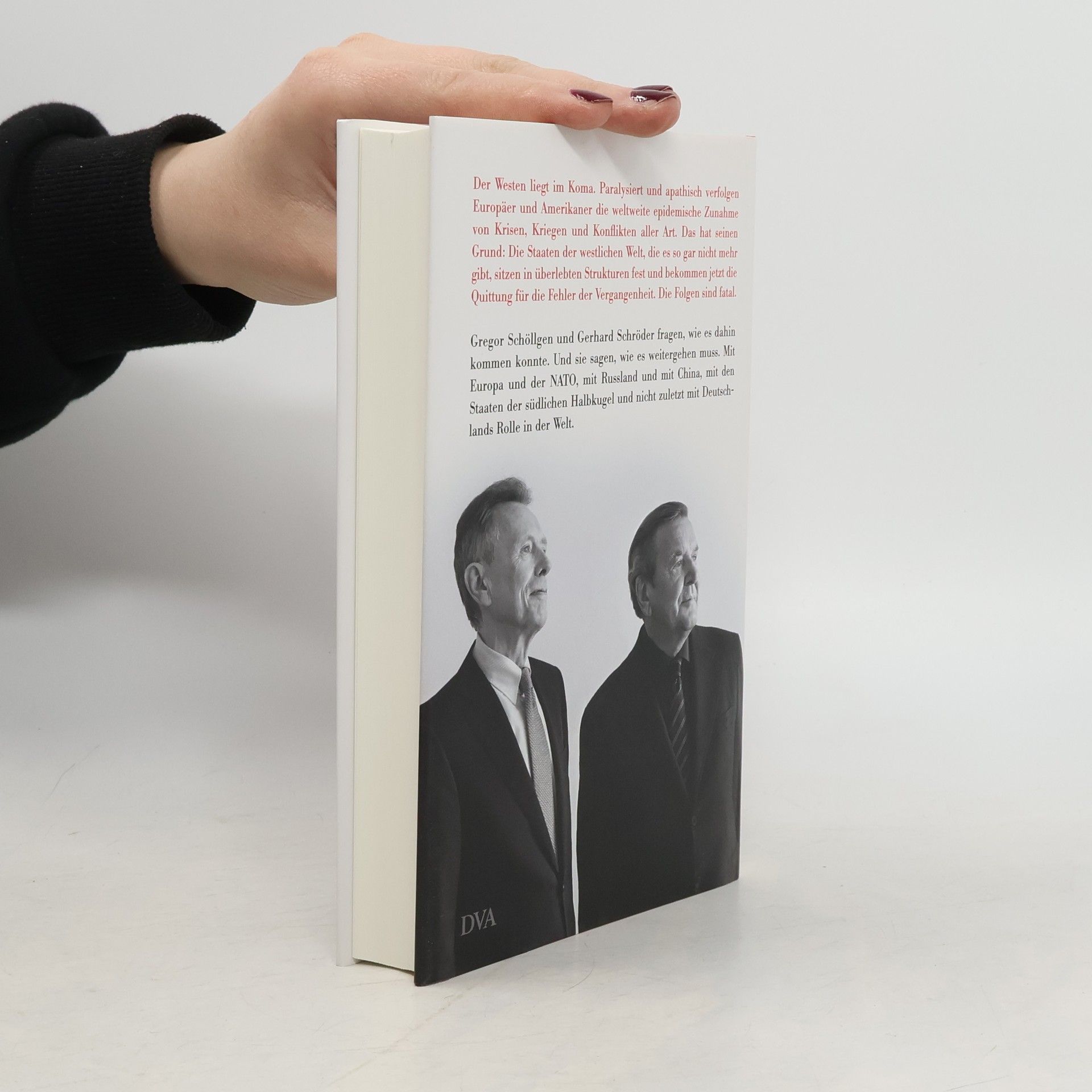 »Der Westen hatte seine Zeit. Sie war gut. Sie war politisch erfolgreich. Aber sie ist vorbei.« Der Historiker Gregor Schöllgen und Bundeskanzler a.D. Gerhard Schröder mit einem thesenstarken Appell Der Westen liegt im Koma. Paralysiert und apathisch verfolgen Europäer und Amerikaner die weltweite epidemische Zunahme von Krisen, Kriegen und Konflikten aller Art. Das hat seinen Grund: Die Staaten der westlichen Welt, die es so gar nicht mehr gibt, sitzen in überlebten Strukturen fest und bekommen jetzt die Quittung für die Fehler der Vergangenheit. Die Folgen sind fatal. Gregor Schöllgen und Gerhard Schröder fragen, wie es dahin kommen konnte. Und sie sagen, wie es weitergehen muss. Mit Europa und der NATO, mit Russland und mit China, mit den Staaten der südlichen Halbkugel und nicht zuletzt mit Deutschlands Rolle in der Welt. Das Buch verbindet den analytischen Blick des Historikers mit dem gestaltenden Zugriff des Politikers. Es ist das Ergebnis eines Gesprächs, das die beiden seit vielen Jahren führen. »Der Westen hatte seine Zeit. Sie war gut. Sie war politisch erfolgreich. Aber sie ist vorbei.« Krisen, Kriege, Konflikte: Warum der Westen jetzt die Quittung für die Fehler der Vergangenheit bekommt