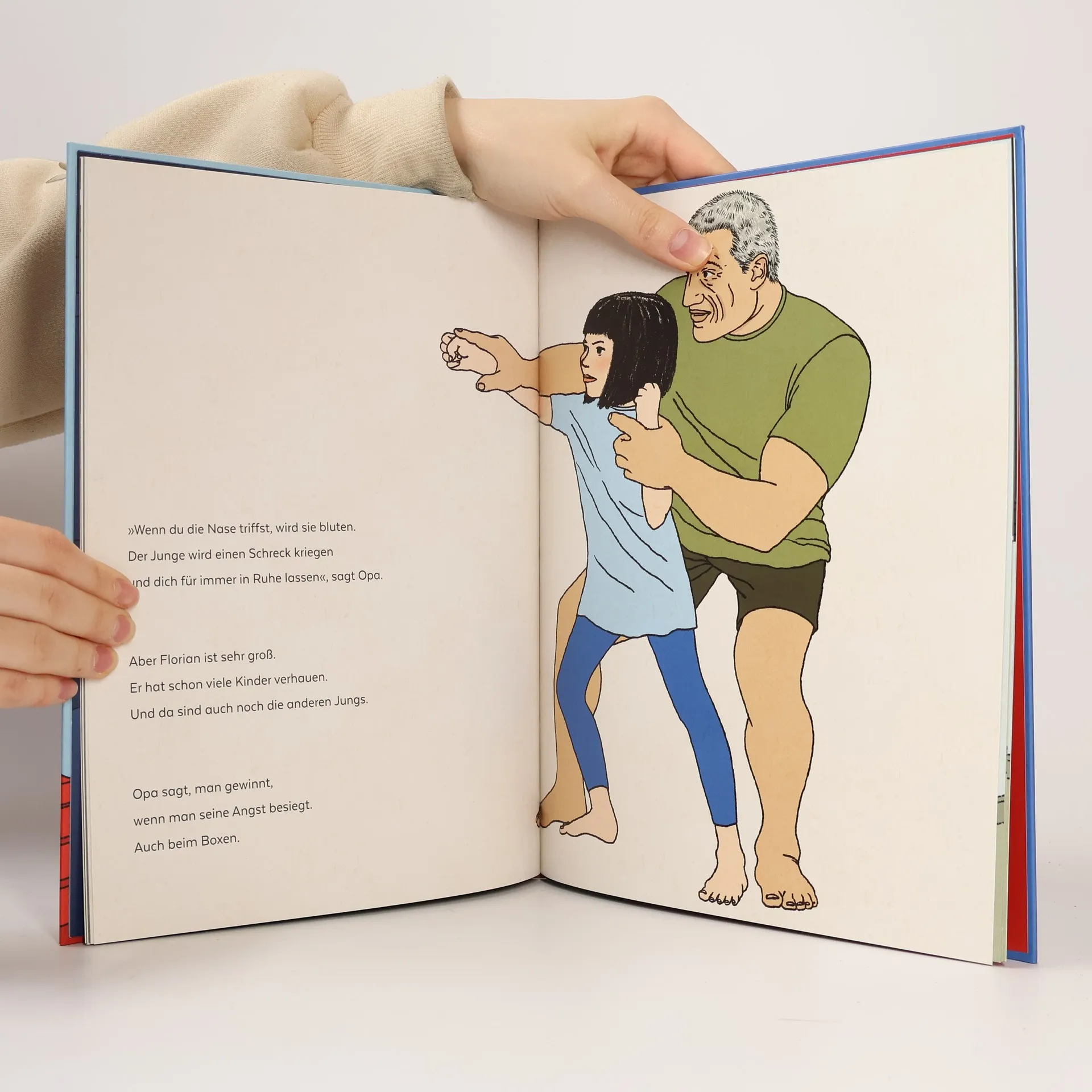 „Ich heiße Mimi und gehe in die zweite Klasse. Florian und die Jungs ärgern mich immer. Ich muss etwas unternehmen. Mein Opa kann mir vielleicht dabei helfen.“ Mimi wird in der Schule von älteren Jungs geärgert und gemobbt. Ihr Opa bringt ihr Boxen bei, damit sie sich wehren kann. Gestärkt geht sie in die Schule und ist gewappnet, als sie wieder auf die Jungs trifft. Aber die Begegnung endet anders, als gedacht. Für Kinder ab 5 Jahren.