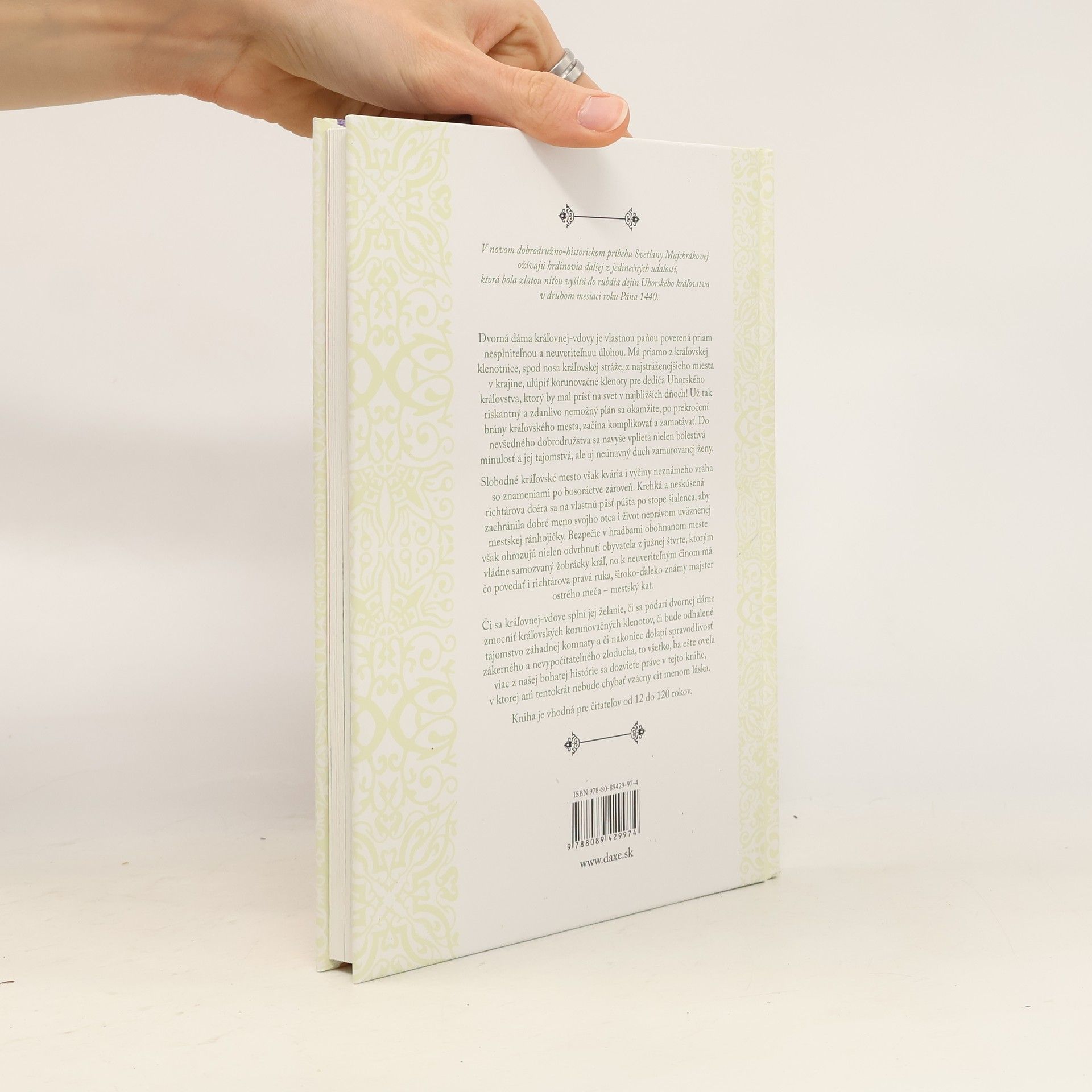 Dvorná dáma kráľovnej-vdovy je vlastnou paňou poverená priam nesplniteľnou a neuveriteľnou úlohou. Má priamo z kráľovskej klenotnice, spod nosa kráľovskej stráže, z najstráženejšieho miesta v krajine, ulúpiť korunovačné klenoty pre dediča Uhorského kráľovstva, ktorý by mal prísť na svet v najbližších dňoch! Už tak riskantný a zdanlivo nemožný plán sa okamžite, po prekročení brány kráľovského mesta, začína komplikovať a zamotávať. Do nevšedného dobrodružstva sa navyše vplieta nielen bolestivá minulosť a jej tajomstvá, ale aj neúnavný duch zamurovanej ženy. Slobodné kráľovské mesto však kvária i výčiny neznámeho vraha so znameniami po bosoráctve zároveň. Krehká a neskúsená richtárova dcéra sa na vlastnú päsť púšťa po stope šialenca, aby zachránila dobré meno svojho otca i život neprávom uväznenej mestskej ránhojičky. Bezpečie v hradbami obohnanom meste však ohrozujú nielen odvrhnutí obyvateľa z južnej štvrte, ktorým vládne samozvaný žobrácky kráľ, no k neuveriteľným činom má čo povedať i richtárova pravá ruka, široko-ďaleko známy majster ostrého meča – mestský kat.