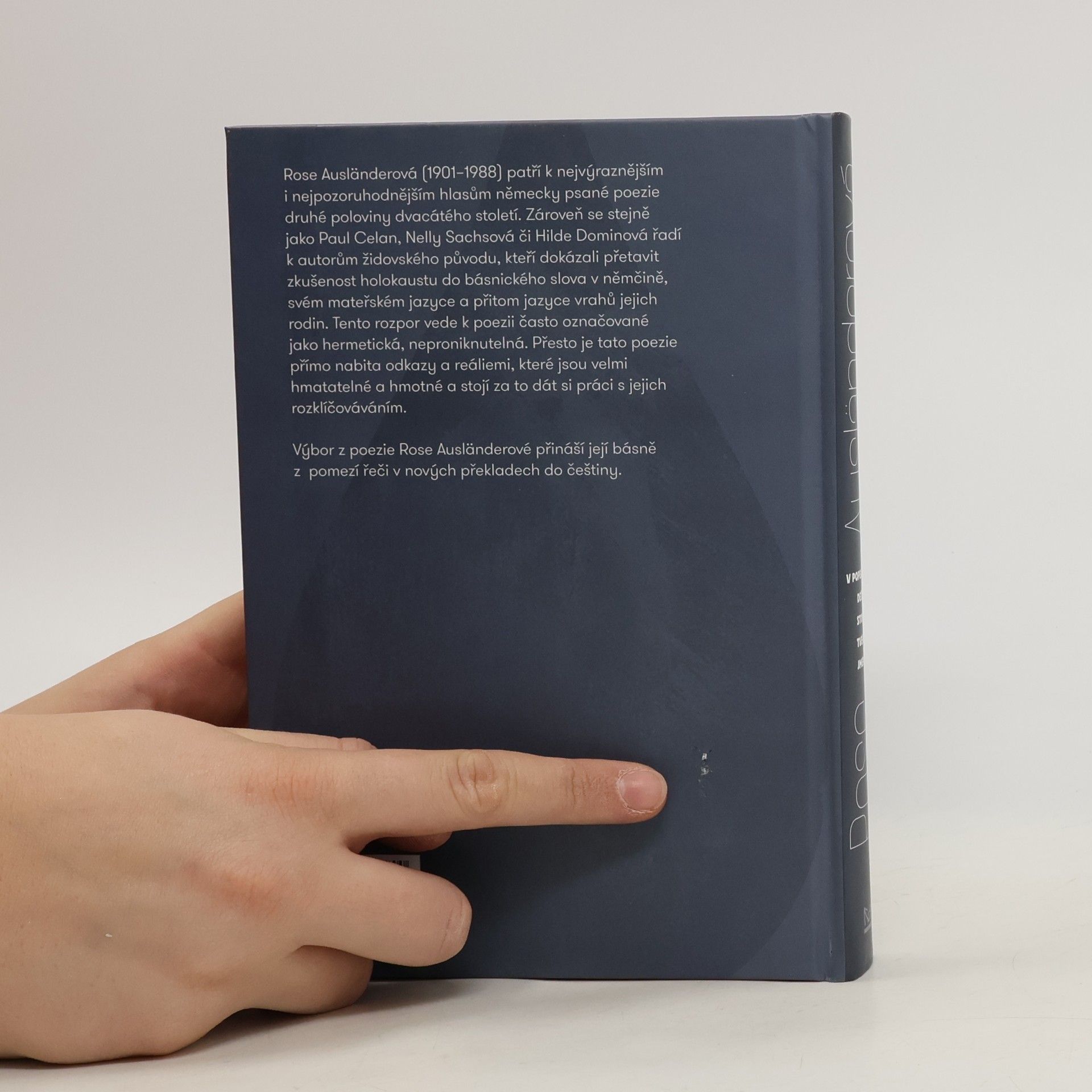 Výbor z poezie Rose Ausländerové přináší její básně z pomezí řeči v nových překladech do češtiny. Rose Ausländerová (1901–1988) patří k nejvýraznějším i nejpozoruhodnějším hlasům německy psané poezie druhé poloviny dvacátého století. Zároveň se stejně jako Paul Celan, Nelly Sachsová či Hilde Dominová řadí k autorům židovského původu, kteří dokázali přetavit zkušenost holokaustu do básnického slova v němčině, svém mateřském jazyce a přitom jazyce vrahů jejich rodin. Tento rozpor vede k poezii často označované jako hermetická, neproniknutelná. Přesto je tato poezie přímo nabita odkazy a reáliemi, které jsou velmi hmatatelné a hmotné a stojí za to dát si práci s jejich rozklíčováváním.