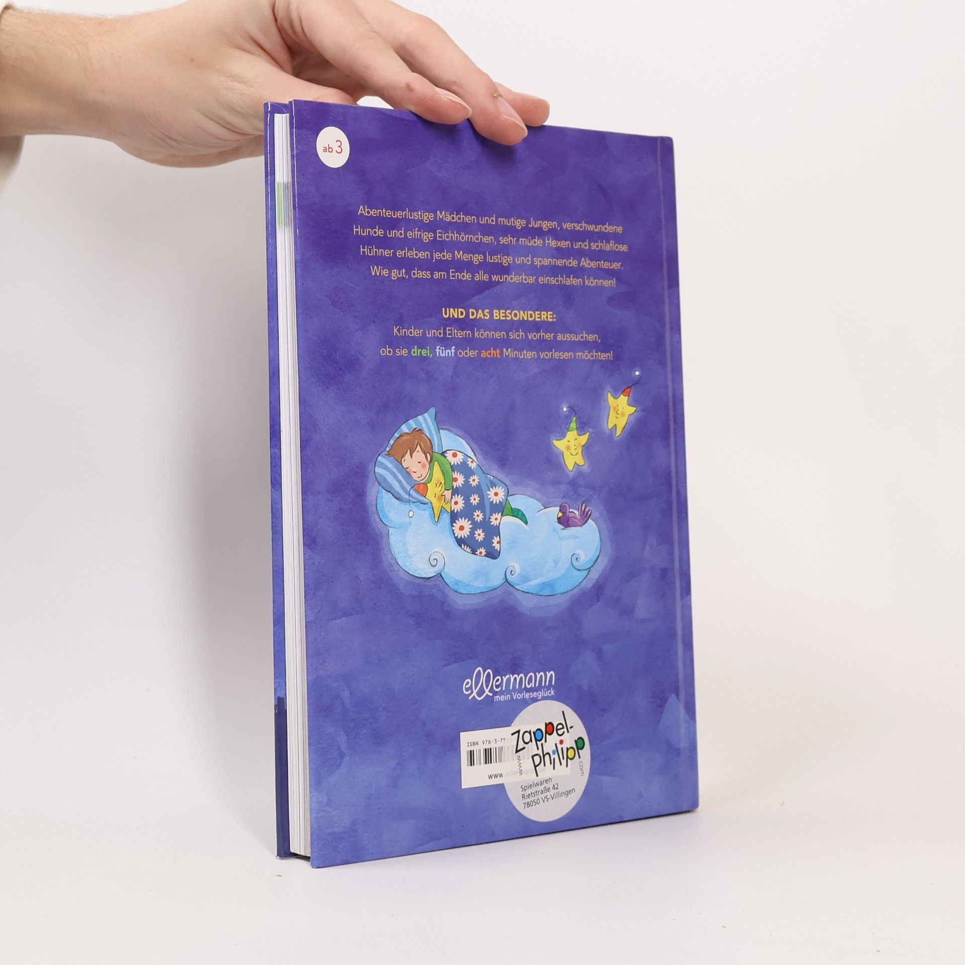 Ein bunter Strauß zur guten Nacht! 3-5-8-Minuten-Geschichten für jeden Abend. In diesem Band geht es um abenteuerlustige Mädchen, sehr mutige Jungs, verschwundene Hunde, eifrige Eichhörnchen, extramüde Hexen und schlaflose Hühner. Allen gemeinsam: Am Ende ihres Abenteuers schlummern sie friedlich und felsenfest ein. Spannung kommt eben vor dem Schlaf. Und vor dem Vorlesen: Dass Kinder und Eltern sich gemeinsam aussuchen, wie lang die Geschichte werden soll. Drei, fünf oder acht Minuten - eine passt immer. So schön kann Kuscheln und Träumen sein!