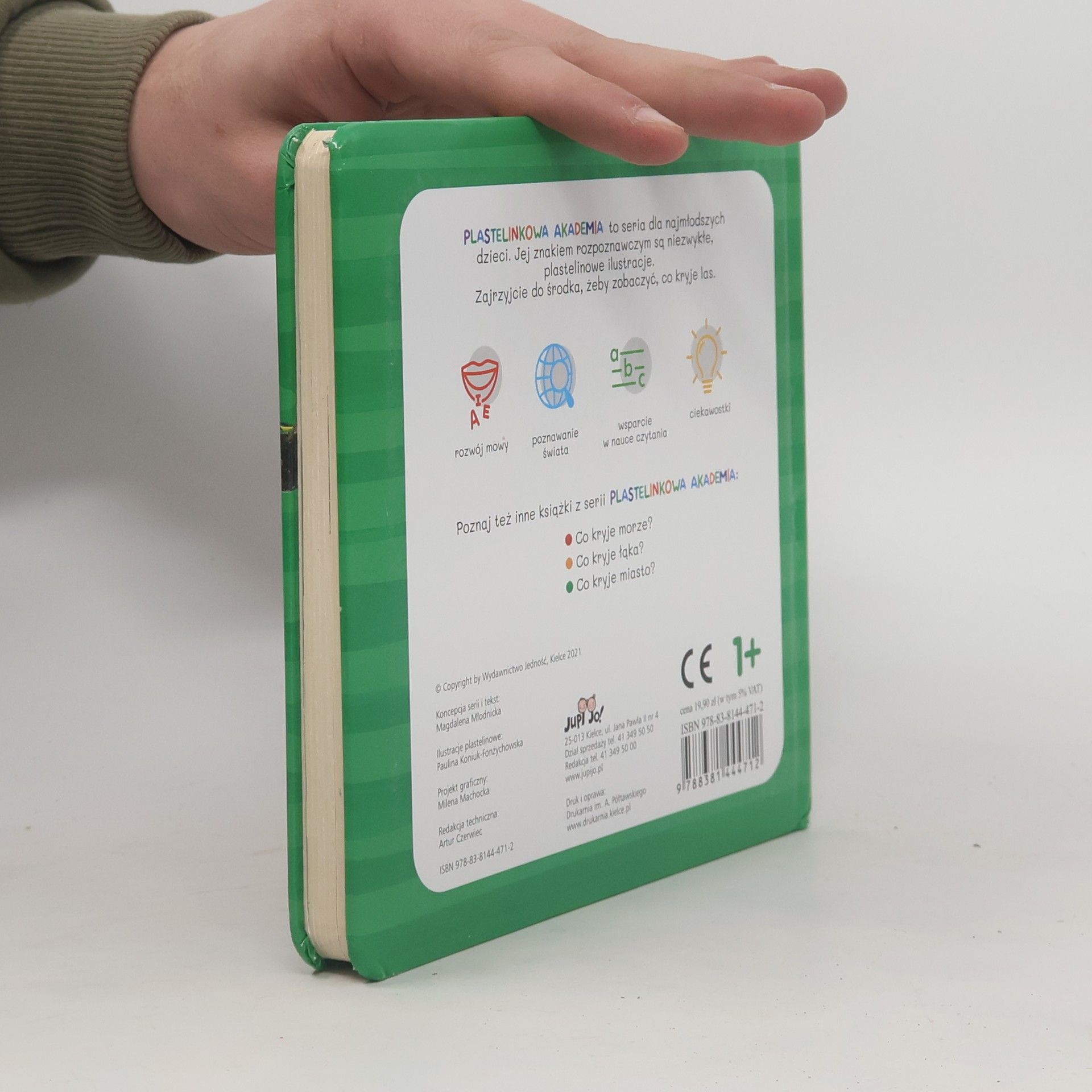 Co kryje las to książeczka z serii Plastelinkowa akademia. Jest adresowana do najmłodszych dzieci, które właśnie rozpoczynają poznawanie świata. Jej znakiem rozpoznawczym są niezwykłe, plastelinowe ilustracje. Książeczka jest skonstruowana tak, żeby rosła razem z dzieckiem. Na pierwszym etapie posłuży do zapoznania malucha z mieszkańcami lasu i rozwijania słownictwa, a nieco później zaskoczy ciekawostkami, które rozbudzą zainteresowanie przyrodą i zachęcą do obserwacji otoczenia.