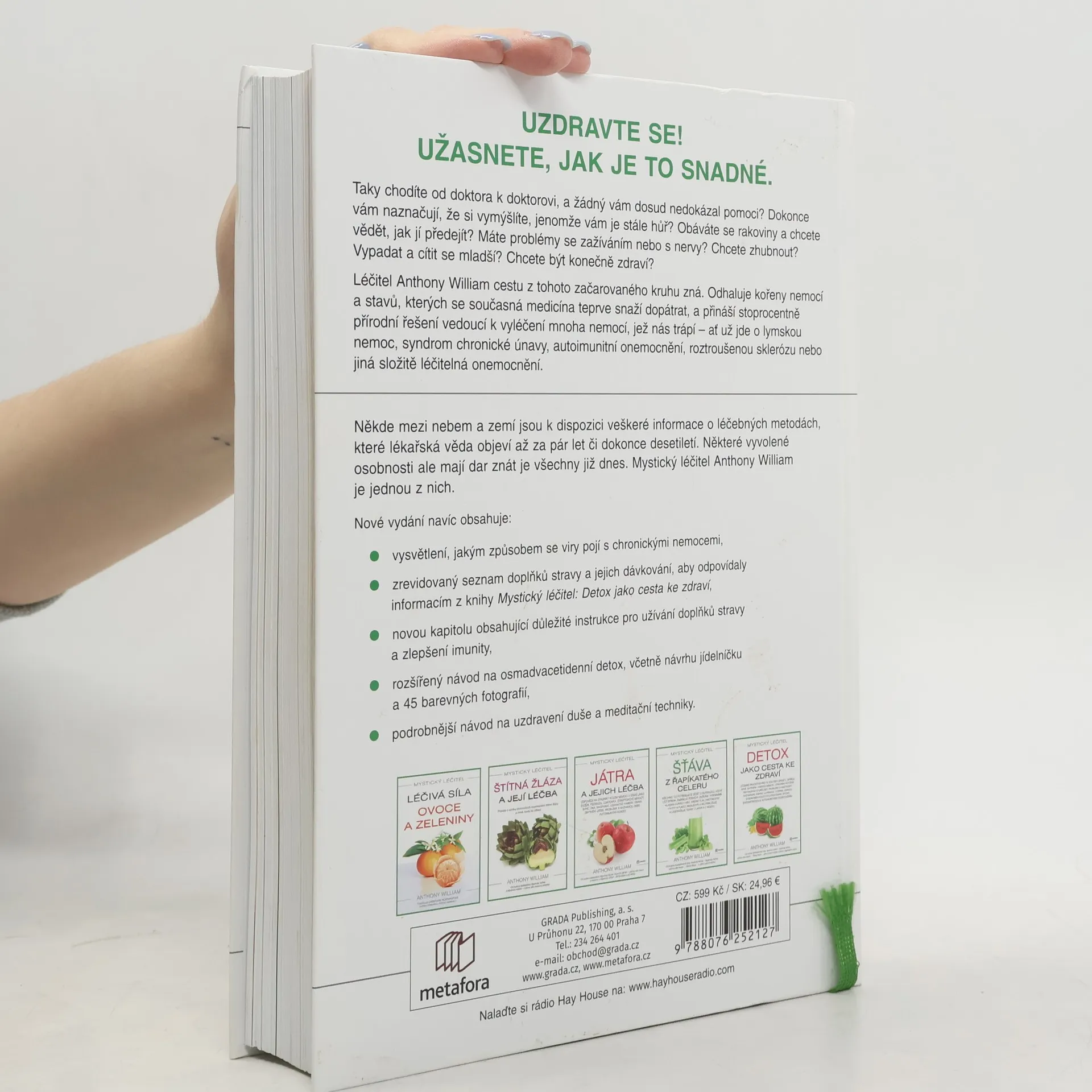 Taky chodíte od doktora k doktorovi, a žádný vám dosud nedokázal pomoct? Dokonce vám naznačují, že jste simulanti, jenomže vám je stále hůř? Obáváte se rakoviny a chcete vědět, jak jí předejít? Chcete zhubnout? Vypadat a cítit se mladší? Chcete být konečně zdraví? Léčitel Anthony William cestu z tohoto začarovaného kruhu zná. Odhaluje kořeny nemocí a stavů, které se současná medicína teprve snaží zjistit, a přináší stoprocentně přírodní řešení k vyléčení mnoha nemocí, co nás trápí – Lymská nemoc, syndrom chronické únavy, autoimunitní onemocnění, roztroušená skleróza a mnoho dalších. Tam někde ve vyšších sférách jsou uložené veškeré informace o léčebných metodách, které lékařská věda objeví až za pár let či dokonce desetiletí. Jisté výjimečné osobnosti ale mají dar znát je všechny již dnes. Mystický léčitel Anthony William je jedním z nich. Nové vydání navíc obsahuje: vysvětlení, jakým způsobem se viry pojí s chronickými nemocemi zrevidovaný seznam doplňků stravy a jejich dávkování, aby odpovídaly informacím z knihy Mystický léčitel: Detox jako cesta ke zdraví novou kapitolu, obsahující důležité instrukce pro užívání doplňků stravy a zlepšení imunity rozšířený návod na osmadvacetidenní detox, včetně návrhu jídelníčku a 45 barevných fotografií rozšířený návod na uzdravení duše a meditační techniky