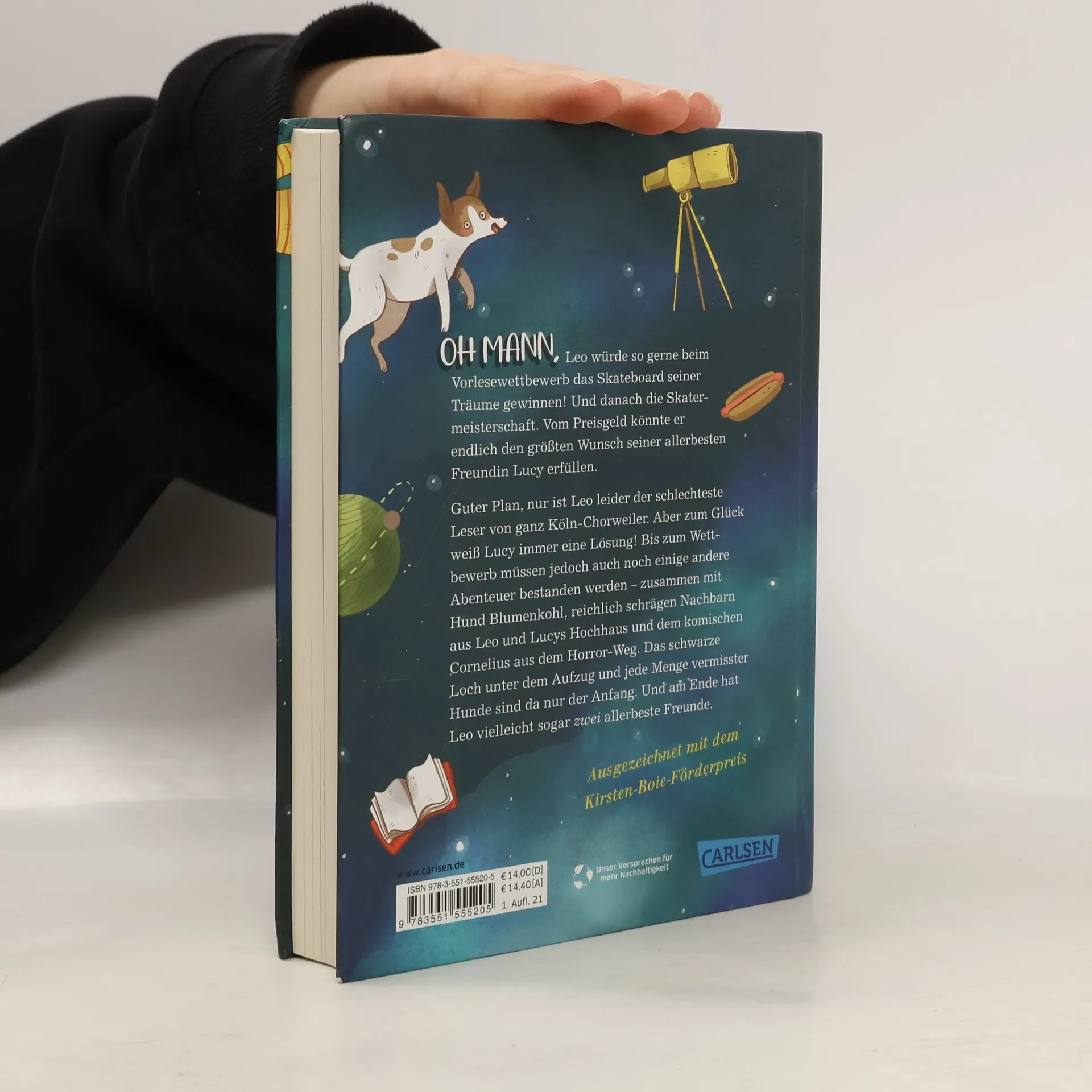 Oh Mann! Leo würde so gerne beim Vorlesewettbewerb das Skateboard seiner Träume gewinnen! Und danach die Skatermeisterschaft. Vom Preisgeld könnte er endlich den größten Wunsch seiner allerbesten Freundin Lucy erfüllen. Guter Plan, nur ist Leo leider der schlechteste Leser von ganz Köln-Chorweiler. Aber zum Glück weiß Lucy immer eine Lösung! Bis zum Wettbewerb müssen jedoch auch noch einige andere Abenteuer bestanden werden - zusammen mit Hund Blumenkohl, reichlich schrägen Nachbarn aus Leo und Lucys Hochhaus und dem komischen Cornelius aus dem Horror-Weg. Das schwarze Loch unter dem Aufzug und jede Menge vermisster Hunde sind da nur der Anfang. Und am Ende hat Leo vielleicht sogar zwei allerbeste Freunde. Für alle Fans von »Rico und Oscar« - und Jungen und Mädchen ab 10! Ausgezeichnet mit dem Kirsten-Boie-Förderpreis