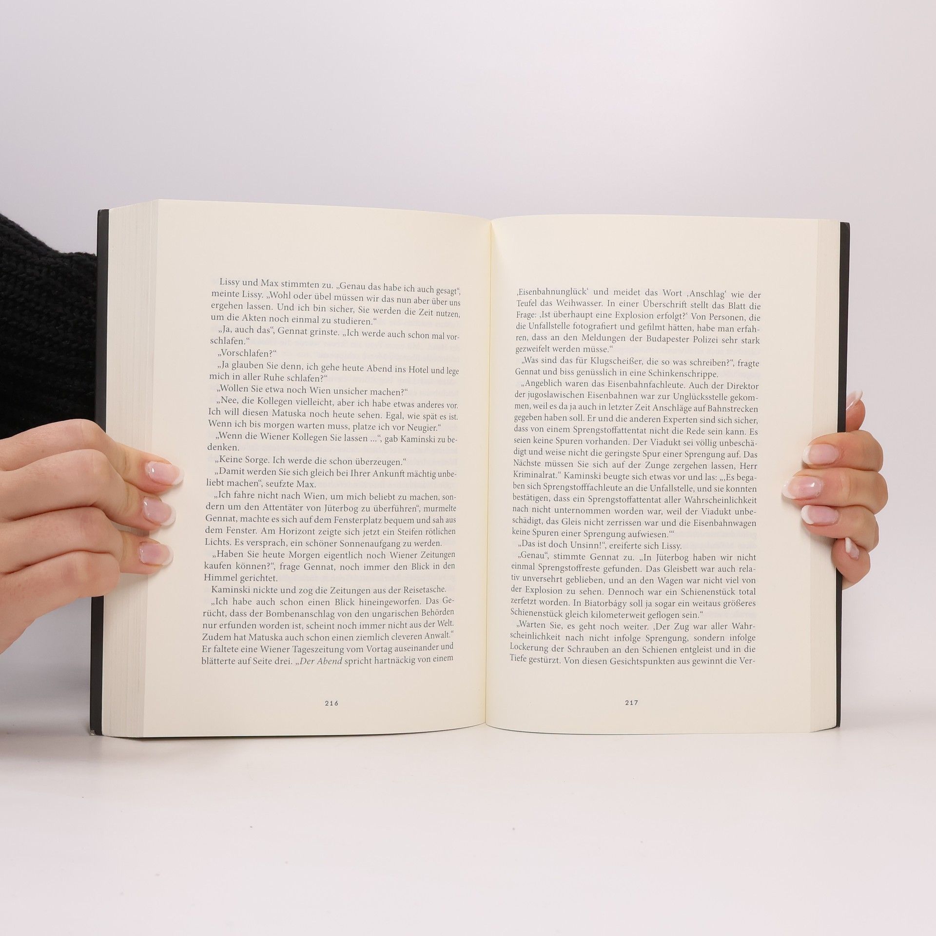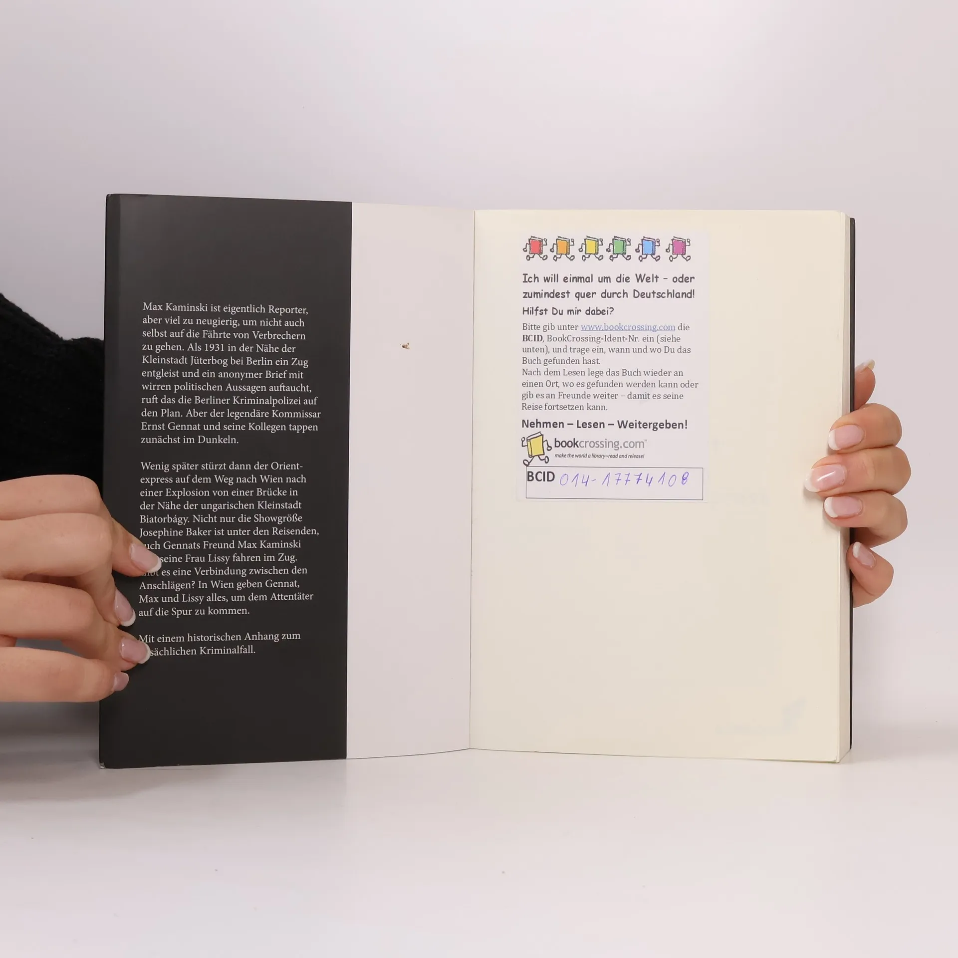 Dem Eisenbahnattentäter auf der SpurMax Kaminski ist eigentlich Reporter, aber viel zu neugierig, um nicht auch selbst auf die Fährte von Verbrechern zu gehen. Als 1931 in der Nähe der Kleinstadt Jüterbog bei Berlin ein Zug entgleist und ein anonymer Brief mit einer Geldforderung auftaucht, ruft das die Berliner Kriminalpolizei auf den Plan. Aber Kommissar Gennat und seine Kollegen tappen zunächst im Dunkeln. Nach einigen Monaten entgleist dann in Ungarn der legendäre Orient-Express auf dem Weg nach Wien. Nicht nur die Showgröße Josephine Baker ist unter den Fahrgästen, auch der Reporter Max Kaminsky und seine Frau Lissy. Kaminsky gibt alles, um dem Attentäter auf die Spur zu kommen, bis ihm ein Zufall zuhilfe kommt…Mit einem historischen Anhang zum tatsächlichen Kriminalfall.