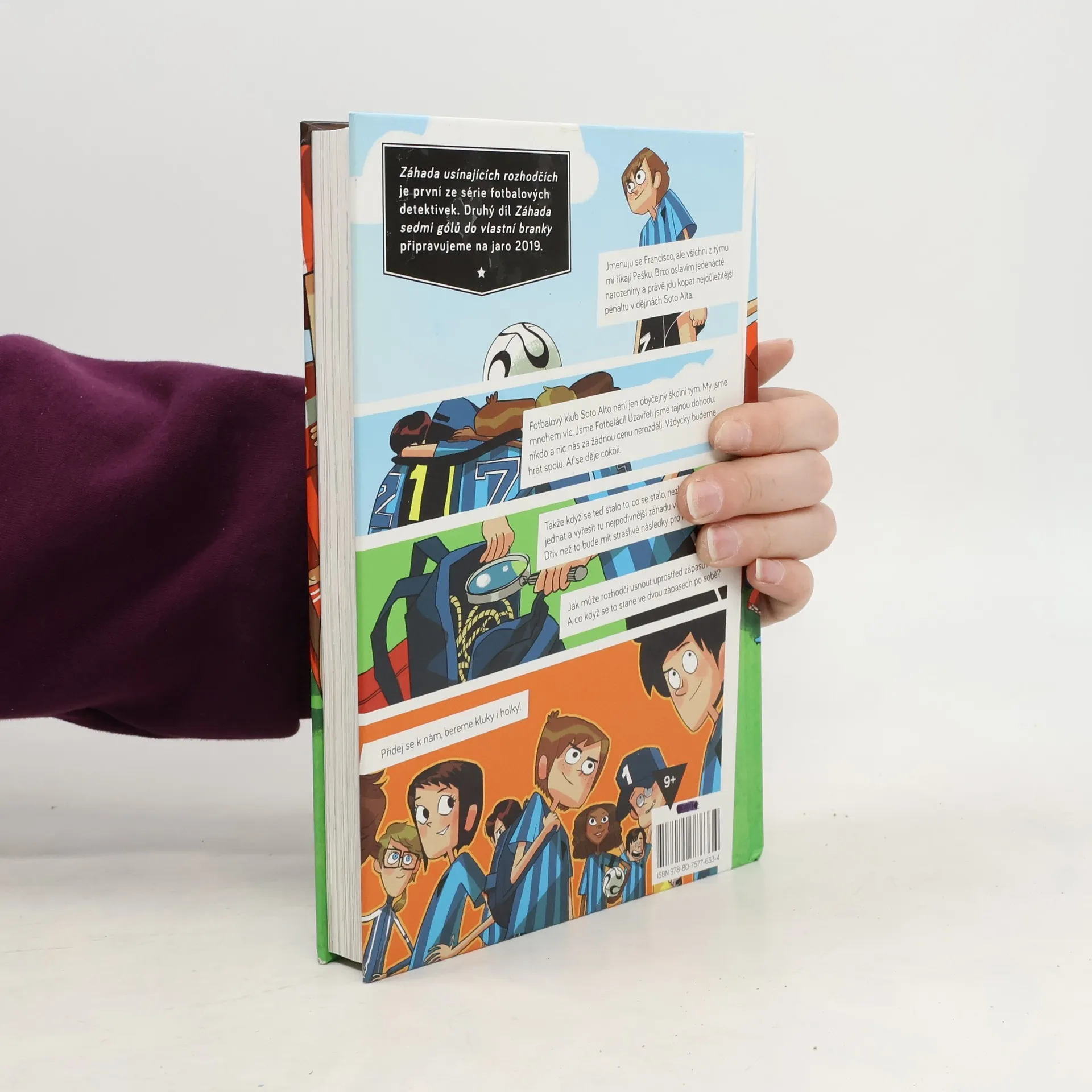 Jmenuju se Francisco, ale všichni z týmu mi říkají Pako. Nedávno mi bylo jedenáct a právě jdu kopat tu nejdůležitější penaltu v dějinách Soto Alta. Sedmý fotbalový tým Soto Alto není jen obyčejný školní oddíl. My jsme mnohem víc. My jsme Fotbaláci! Máme dohodu: nikdo a nic nás za žádnou cenu nerozdělí. Vždycky budeme hrát spolu. Ať se děje cokoli. Takže když se stalo to, co se stalo, neměli jsme jinou možnost než začít jednat: zapojit mozkové závity a přijít na kloub té nejpodivnější záhadě, jakou kdy kdo ve fotbale zažil. Jak může rozhodčí usnout uprostřed zápasu? Jak můžou usnout dva rozhodčí ve dvou zápasech? Záhada usínajících rozhodčích je první ze série fotbalových detektivek. Druhý díl Tajemství sedmi gólů do vlastní branky připravujeme na jaro 2019. Pro čtenáře od devíti let