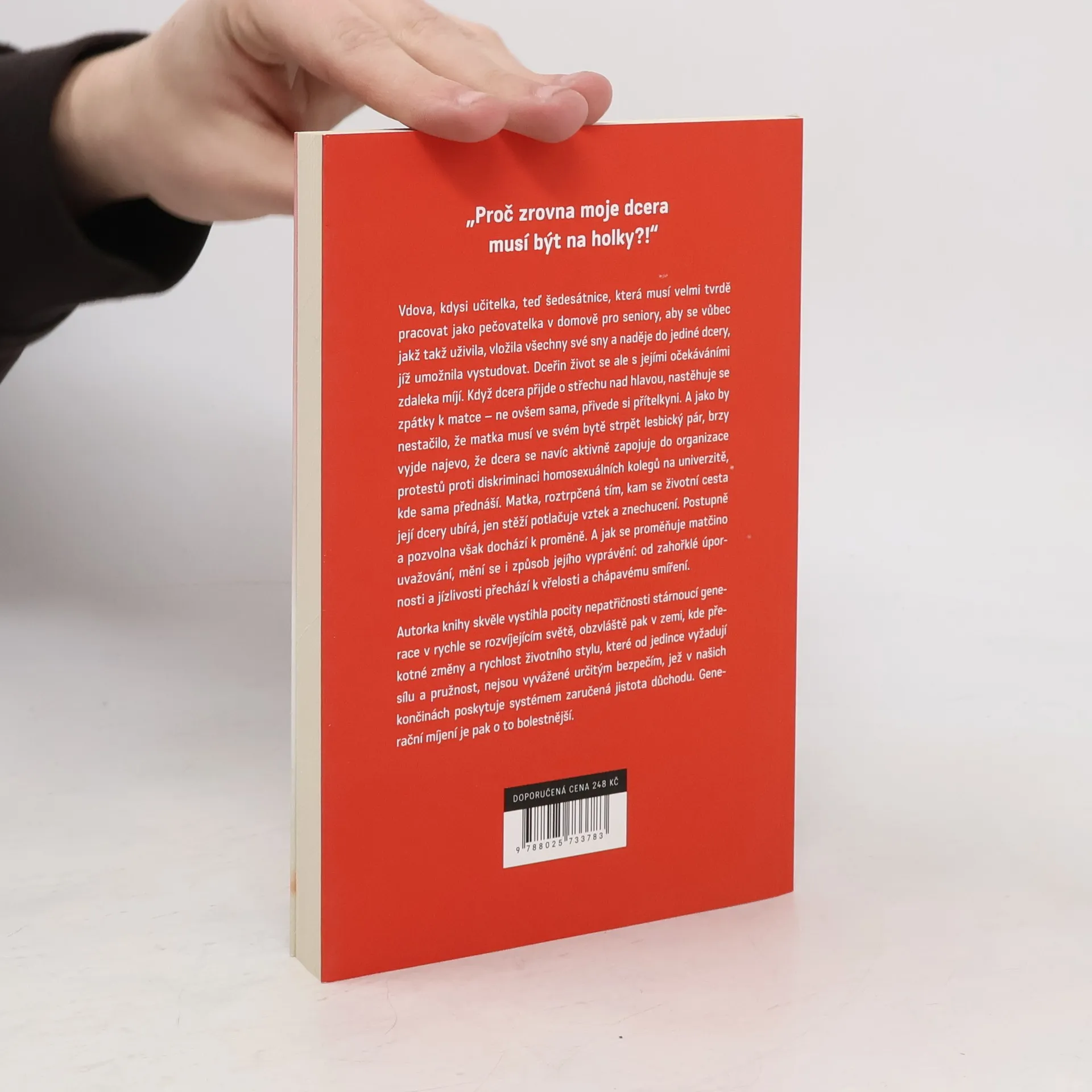 Ovdovělá matka, která pracuje jako ošetřovatelka v domově důchodců, žije se svou dcerou a její přítelkyní v malém domě na předměstí. Dcera, studentka katolické vysoké školy, se rozhodne veřejně přiznat svou homosexualitu a protestovat proti diskriminaci svých kolegů. Tímto krokem se matka ocitá v situaci, kdy musí čelit nejen svému hněvu a zklamání, ale i neochotě přijmout dceřin životní styl. V průběhu příběhu se matčina perspektiva postupně mění, když se snaží porozumět generaci, která má odlišné názory. Román se zaměřuje na témata diskriminace a mezilidských vztahů, přičemž odhaluje pocity stárnoucí generace v rychle se měnícím světě. Autorka skvěle zachycuje napětí mezi matkou a dcerou, které pramení z různých hodnot a životních zkušeností. Matka se musí vyrovnat s tím, že její dcera je vystavena odsouzení společnosti a zároveň se snaží pochopit, jak se její vlastní pohled na svět mění. Příběh odhaluje bolestné mezigenerační rozdíly a ukazuje, jak těžké je najít společnou řeč v otázkách identity a tolerance.