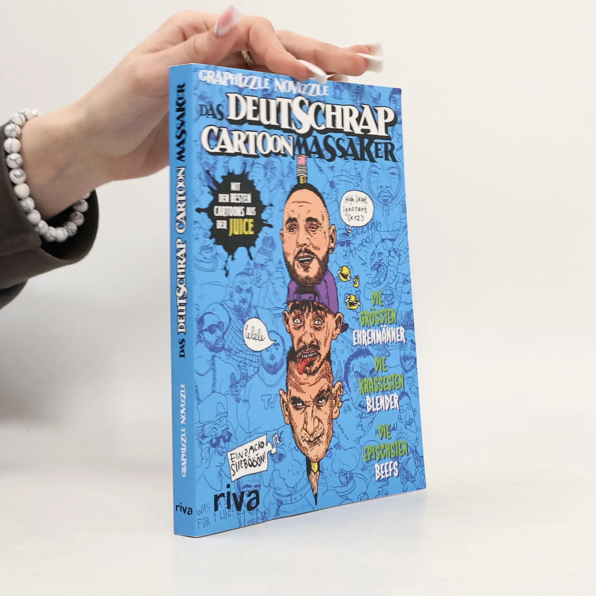 Rapper haben ANGST vor diesem Buch! »Wir schreiben das 21. Jahrhundert nach Christus. Ganz Rapdeutschland ist von Gestalten bevölkert, welche nicht nur optisch einem schlechten Comic entsprungen zu sein scheinen. Ganz Rapdeutschland? Nein! Ein verkrachter Cartoonist hört nicht auf, der Wackness Widerstand zu leisten.« Vom Rucksack tragenden Realkeeper bis zum Hustensaft abhängigen Afrotrap-Trittbrettfahrer wird auch der letzte Hiphop-Kaschper in Graphizzle Novizzles respektlosen Zeichnungen durch den Kakao gezogen. Damit ist er zu einem der wichtigsten Kommentatoren von Deutschrap geworden und wird für seine spitze Feder von einigen wenigen Rappern gefeiert und von den meisten gehasst. In diesem über 200 Cartoon starken Best-of sind neben neuen Arbeiten auch die bekanntesten aus dem JUICE-Magazin versammelt. Bos(s)haft on point!
