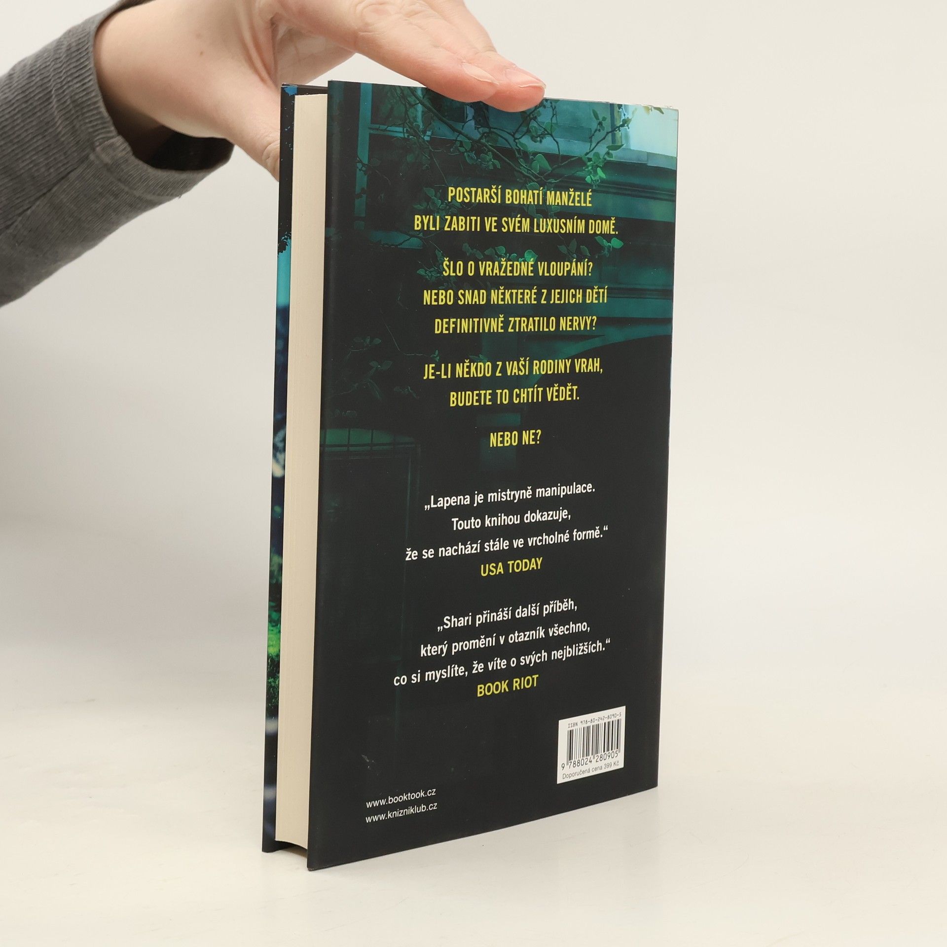Nejnovější příběh mistryně psychothrilleru – opět dokonale drásavý a neodložitelný. Brecken Hill je drahá adresa. Musíte mít hodně peněz, abyste tu mohli bydlet. Tak jako Fred a Sheila Mertonovi. Žádné bohatství vás však neochrání, když vám u dveří zazvoní vrah. Manželé Mertonovi byli brutálně zabiti pár hodin poté, co přivítali na velikonoční nedělní večeři své tři dospělé děti. Ty jejich smrt pochopitelně těžce nesou. Nebo ne? Na každého z nich čeká pohádkové dědictví. Svého náladového otce nesnášeli a netečná matka se jich nikdy nezastala. Na jednoho z nich to bylo možná už příliš. Ale na koho? Je-li váš sourozenec vrah, chtěli byste to nejspíš vědět...