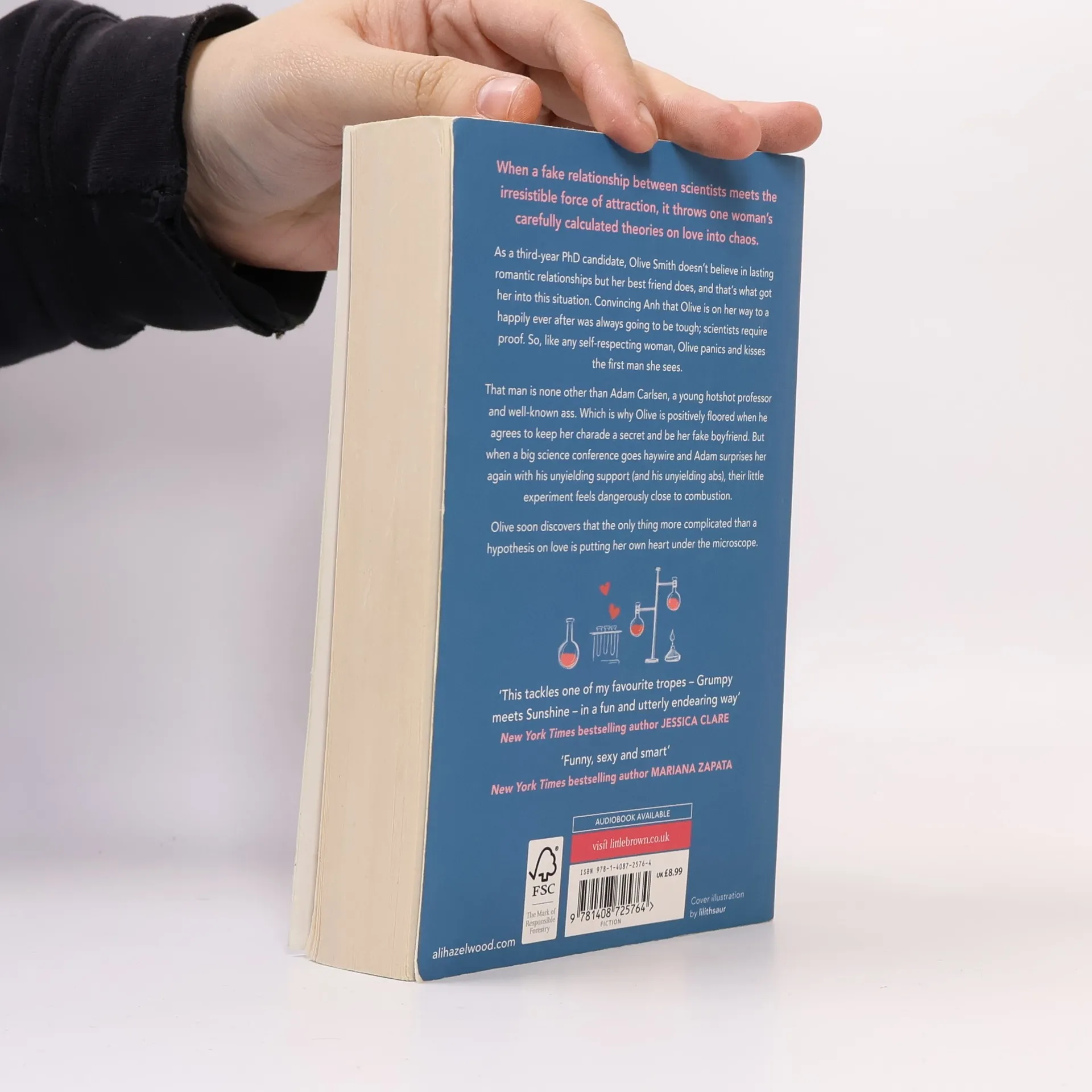 When a fake relationship between scientists meets the irresistible force of attraction, it throws one woman's carefully calculated theories on love into chaos. As a third-year Ph.D. candidate, Olive Smith doesn't believe in lasting romantic relationships but her best friend does, and that's what got her into this situation. Convincing Anh that Olive is on her way to a happily ever after was always going to be tough, scientists require proof. So, like any self-respecting woman, Olive panics and kisses the first man she sees. That man is none other than Adam Carlsen, a young hotshot professor and well-known ass. Which is why Olive is positively floored when he agrees to keep her charade a secret and be her fake boyfriend. But when a big science conference goes haywire and Adam surprises her again with his unyielding support (and his unyielding abs), their little experiment feels dangerously close to combustion. Olive soon discovers that the only thing more complicated than a hypothesis on love is putting her own heart under the microscope.