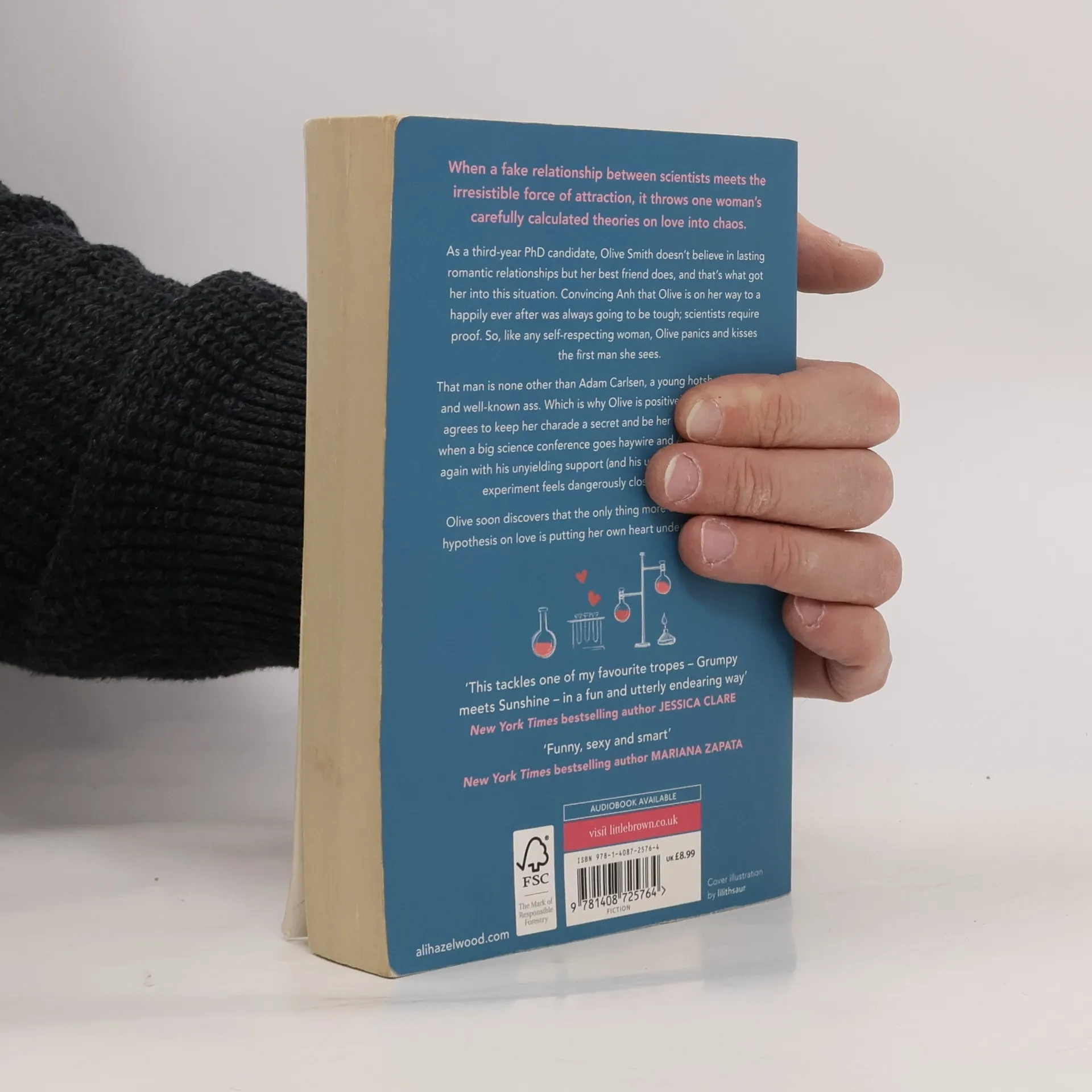 When a fake relationship between scientists meets the irresistible force of attraction, it throws one woman's carefully calculated theories on love into chaos. As a third-year Ph.D. candidate, Olive Smith doesn't believe in lasting romantic relationships but her best friend does, and that's what got her into this situation. Convincing Anh that Olive is on her way to a happily ever after was always going to be tough, scientists require proof. So, like any self-respecting woman, Olive panics and kisses the first man she sees. That man is none other than Adam Carlsen, a young hotshot professor and well-known ass. Which is why Olive is positively floored when he agrees to keep her charade a secret and be her fake boyfriend. But when a big science conference goes haywire and Adam surprises her again with his unyielding support (and his unyielding abs), their little experiment feels dangerously close to combustion. Olive soon discovers that the only thing more complicated than a hypothesis on love is putting her own heart under the microscope.