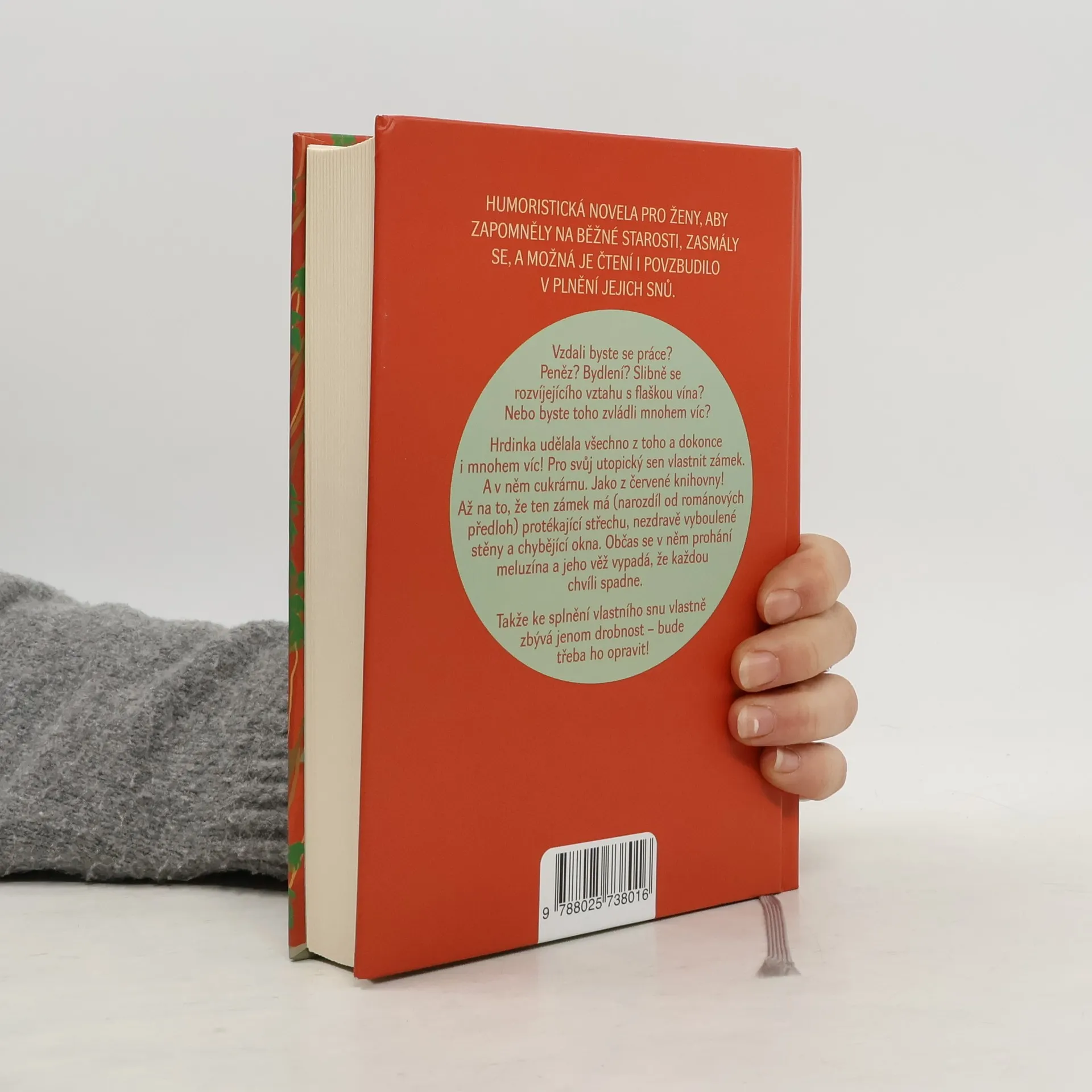 Co všechno uděláte pro splnění svého snu? Vzdáte se práce? Peněz? Bydlení? Slibně se rozvíjejícího vztahu s flaškou vína? Nebo byste toho zvládli mnohem víc? Hrdinka udělala všechno z toho, a dokonce i mnohem víc. Pro svůj utopický sen vlastnit zámek. A v něm cukrárnu. Jako z červené knihovny! Až na to, že ten zámek má (na rozdíl od románových předloh) protékající střechu, nezdravě vyboulené stěny a chybí mu okna. Občas se v něm prohání meluzína a jeho věž vypadá, že každou chvíli spadne. Takže ke splnění vlastního snu vlastně zbývá jenom drobnost – bude třeba ho opravit! Kniha je vyprávěna z perspektivy tří postav, z nichž hlavní je Kateřina, která se po nevydařených manželstvích rozhodne od základů změnit svůj dosavadní život a splnit si svůj sen o vybudování cukrárny. Setkává se se svéráznou Blaženou, která sama sebe pasovala do role ochránkyně zámku, a jejím synovcem Tomášem, majitelem stavební firmy. Tyto tři naprosto rozdílné osobnosti se postupně spojí, aby chátrající zámeček zachránily.