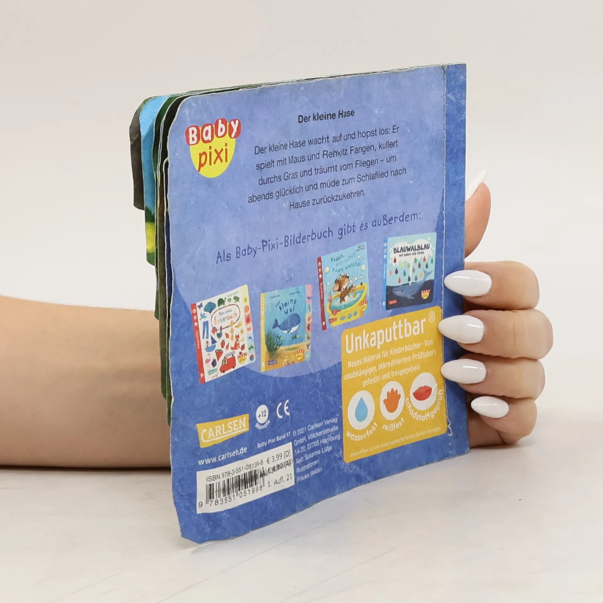 Der kleine Hase wacht auf und hopst los: Er spielt mit Maus und Rehkitz Fangen, kullert durch´s Gras und träumt vom Fliegen – um abends glücklich und müde zum Schlaflied nach Hause zurückzukehren. Mit farbenfrohem Register als Blätterhilfe für Kinder ab 1 Jahr. Baby Pixi für die ganz Kleinen: Das innovative Material ist wasserfest, schadstoffgeprüft und reißfest. Baby Pixi – einfach unkaputtbar®!