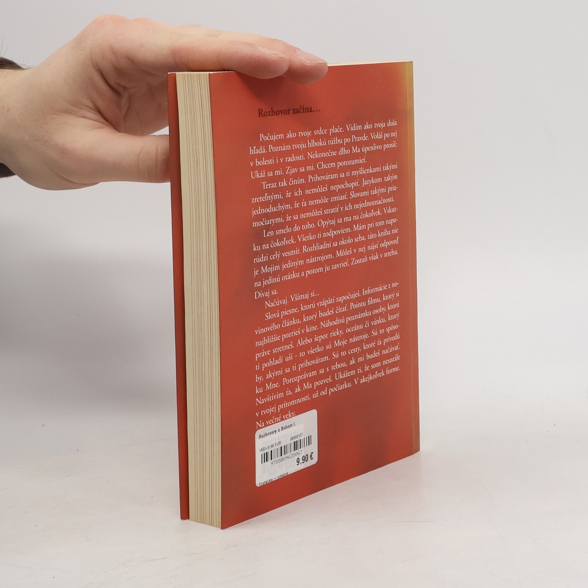 Prvá časť trilógie Rozhovory s Bohom nás uvedie do hlbokých úvah o vlastnom živote, jeho dobrých i tienistých stránkach. Po sérii zdrvujúcich osudových rán začal autor klásť Bohu množstvo otázok. Odpovede prinášajú nové posolstvá o zmysle života, lásky, o práci a peniazoch. Pochopenie problémov, ktoré vytvárajú jednotlivci a teda aj my. Je to základná kniha poznania seba samého a univerzálnych zákonov.