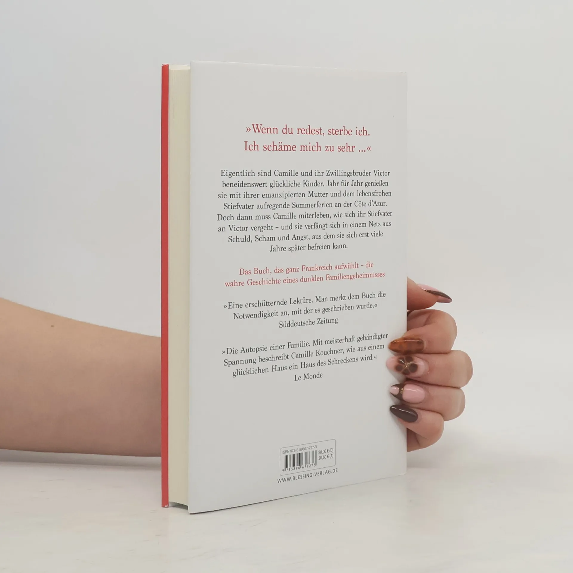 Der Nr.1. Bestseller aus Frankreich „Wenn du redest, sterbe ich. Ich schäme mich zu sehr ...“ Eigentlich sind Camille und ihr Zwillingsbruder Victor beneidenswert glückliche Kinder. Jahr für Jahr genießen sie mit ihrer emanzipierten Mutter und dem lebensfrohen Stiefvater aufregende Sommerferien an der Côte d’Azur. Doch dann muss Camille miterleben, wie sich ihr Stiefvater an Victor vergeht – und sie verfängt sich in einem Netz aus Schuld, Scham und Lähmung, aus dem sie sich erst viele Jahre später befreien kann. Das Buch, das ganz Frankreich aufwühlt - die wahre Geschichte eines dunklen Familiengeheimnisses