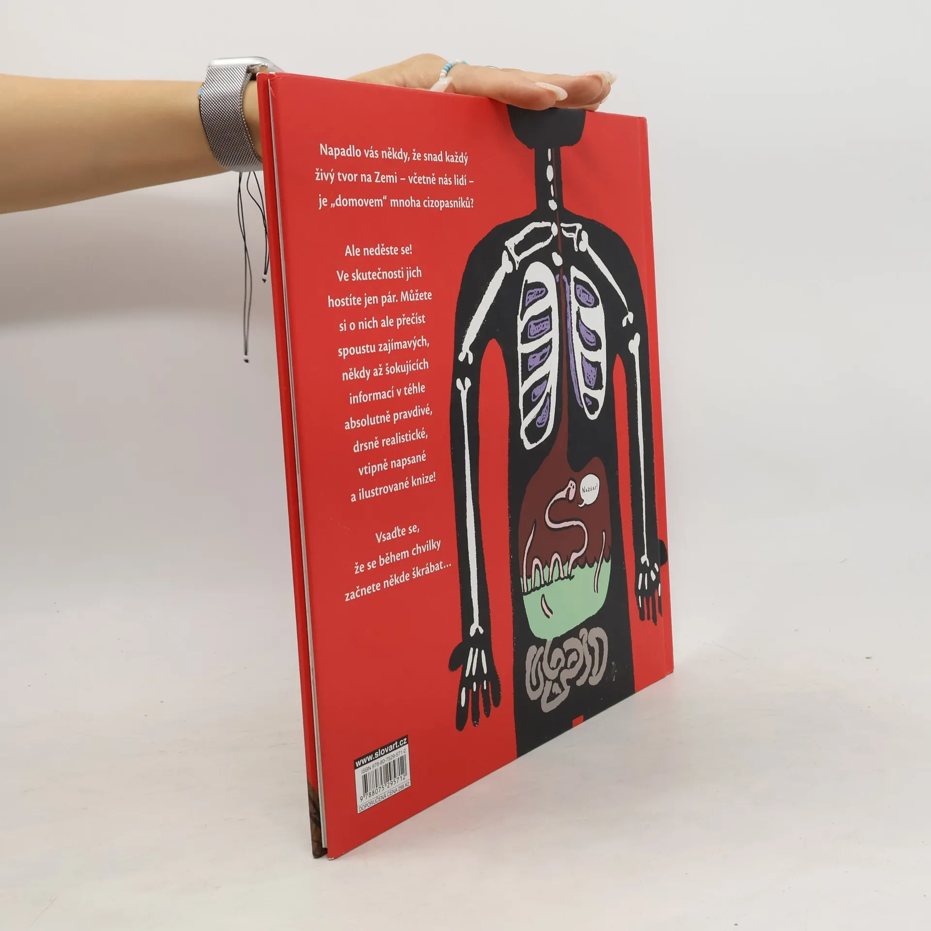 Napadlo vás někdy, že snad každý živý tvor na naší planetě – včetně nás lidí – je „domovem“ mnoha různých cizopasníků? Jsou stovky všelijakých parazitů, od maličkých roztočů po dlouhé tasemnice, kteří mohou žít na povrchu nebo uvnitř našich těl. Ale neděste se! Vaše těla jsou bezpochyby příliš čistá a upravená na to, aby uživila mnoho parazitů. Pár jich však „hostíte“, i když si to nemyslíte. A o těch dalších si můžete přečíst spoustu zajímavých, někdy až šokujících informací v téhle absolutně pravdivé, drsně realistické i vtipně napsané a ilustrované knížce! Že se od teď během několika následujících vteřin začnete někde škrábat?! To je jasné! A když vás čtení pobaví, můžete si užít také další knihu z dílny populárního autora a ilustrátora – Bobky, šišky a jiná hovínka, tedy knihu o tom, o čem se většinou nemluví.