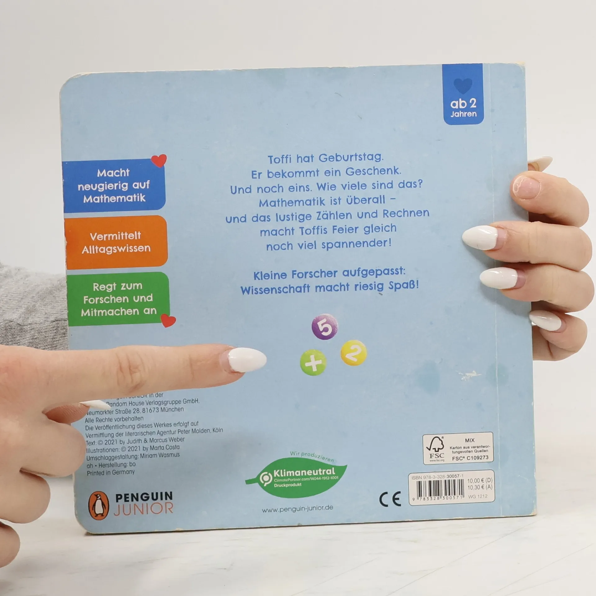 Mathe ist babyleicht! Naturwissenschaft altersgerecht umgesetzt für Kinder ab 2 Jahren Toffi hat Geburtstag. Er bekommt ein Geschenk. Und noch eins. Wie viele sind das? Mathematik ist überall – und das lustige Zählen und Rechnen macht Toffis Feier gleich noch viel spannender! Kleine Forscher aufgepasst: Wissenschaft macht riesig Spaß! Weitere Bände der Babyleicht erklärt-Reihe: Physik Biologie Chemie Ausstattung: Mit fbg. Illustrationen