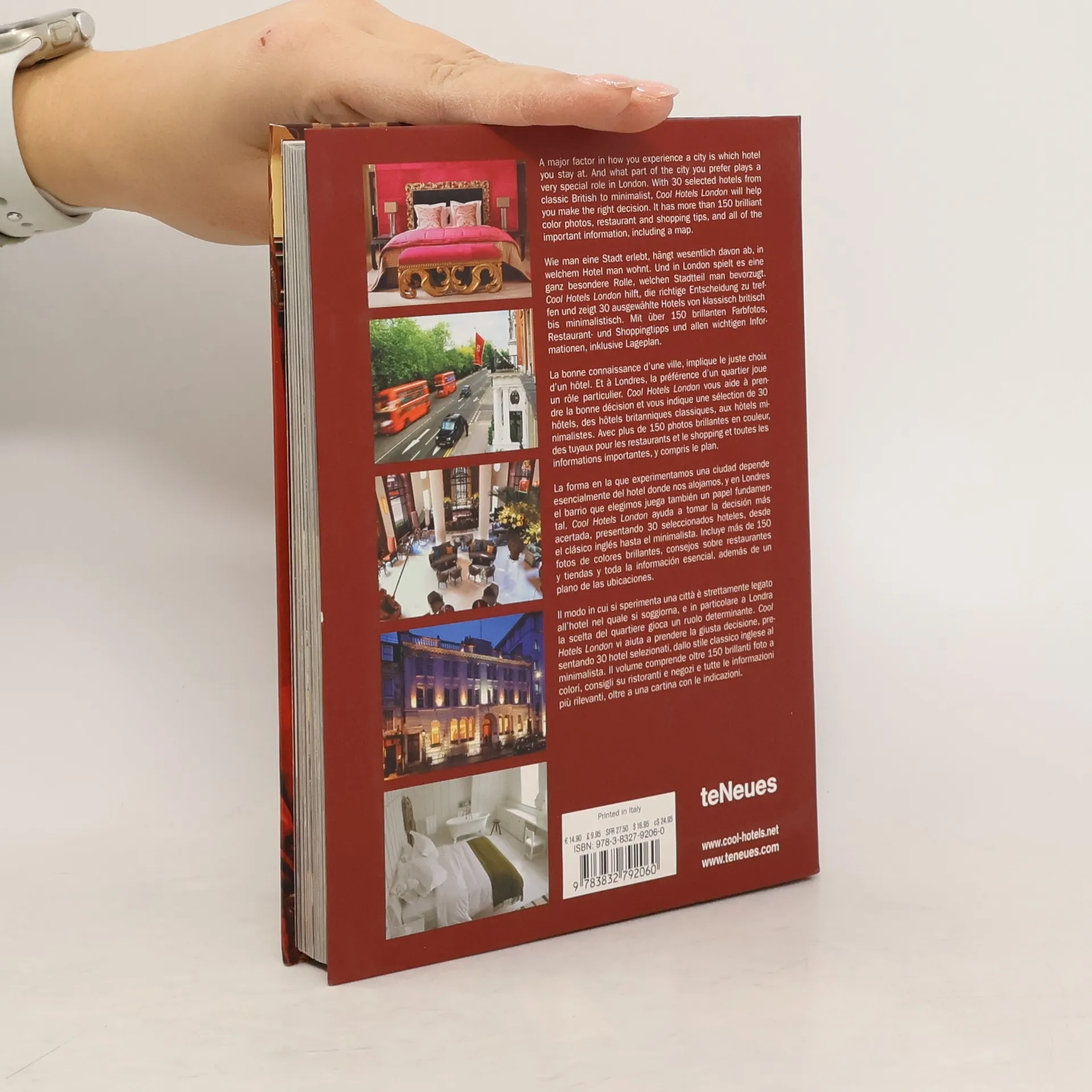 In London verbinden sich Tradition und Moderne zu einem einzigartigen Flair. Nirgends sticht das stärker ins Auge als in der Hotellandschaft der Themse-Metropole. Der vorliegende Band stellt schicke Hotels vor, die auch den anspruchsvollsten Gast begeistern. Zu jedem Haus findet der Leser detaillierte Angaben zur Ausstattung sowie Hinweise auf Restaurants und Geschäfte, die in den teNeues-Buchreihen Cool Restaurants und COOL SHOPS vorgestellt werden. Der umfassende Guide enthält so faszinierende Hotels wie das Hazlitt's, das B+B Belgravia und Brown's Hotel. Von Martin N. Kunz sindbei teNeuesbereits mehrere Bücher in den erfolgreichen Reihen Luxury Books, Designpockets, Cool Restaurants sowie architecture & design erschienen. - Handlicher Band im Flexicover mit rund 200 Farbfotos, aus denen das behagliche Ambiente der erstklassigen Londoner Häuser spricht - Ein unverzichtbarer Hotelführer für London-Reisende und Design-Profis gleichermaßen