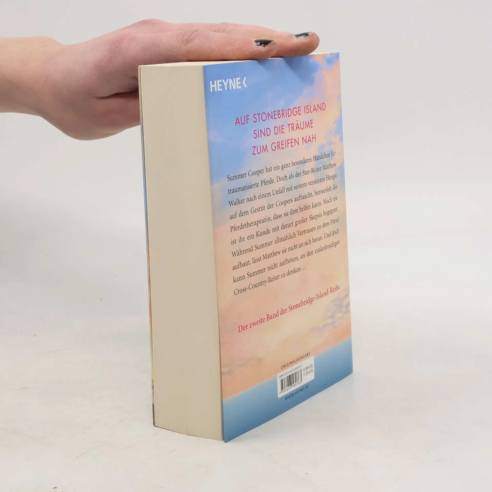Summer Cooper hat ein ganz besonderes Händchen für traumatisierte Pferde. Doch als der Star-Reiter Matthew Walker nach einem Unfall mit seinem verstörten Hengst auf dem Gestüt der Coopers auf Stonebridge Island auftaucht, bezweifelt die Pferdetherapeutin, dass sie ihm helfen kann. Noch nie ist ihr ein Kunde mit derart großer Skepsis begegnet. Während Summer allmählich Vertrauen zu dem Pferd aufbaut, lässt Matthew sie nicht an sich heran. Und doch kann Summer nicht aufhören, an den risikofreudigen Cross-Country-Reiter zu denken …