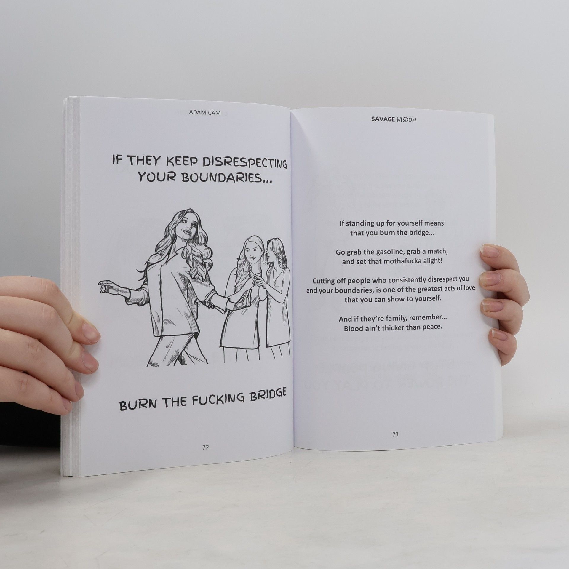 Savage Wisdom will slap you in the face, change the way you see the world, then give you a big loving hug.?In this book, author and spiritual badass Adam Cam takes you on a journey of self-discovery and new life perspectives. By the end of the book, not only will you have a firecracker under your ass, but you'll feel ready to take on life as an empowered, spiritually aware, badass version of yourself. *If you are easily offended by hard-hitting truths, dark humour and the occasional swear word... this book isn't for you
