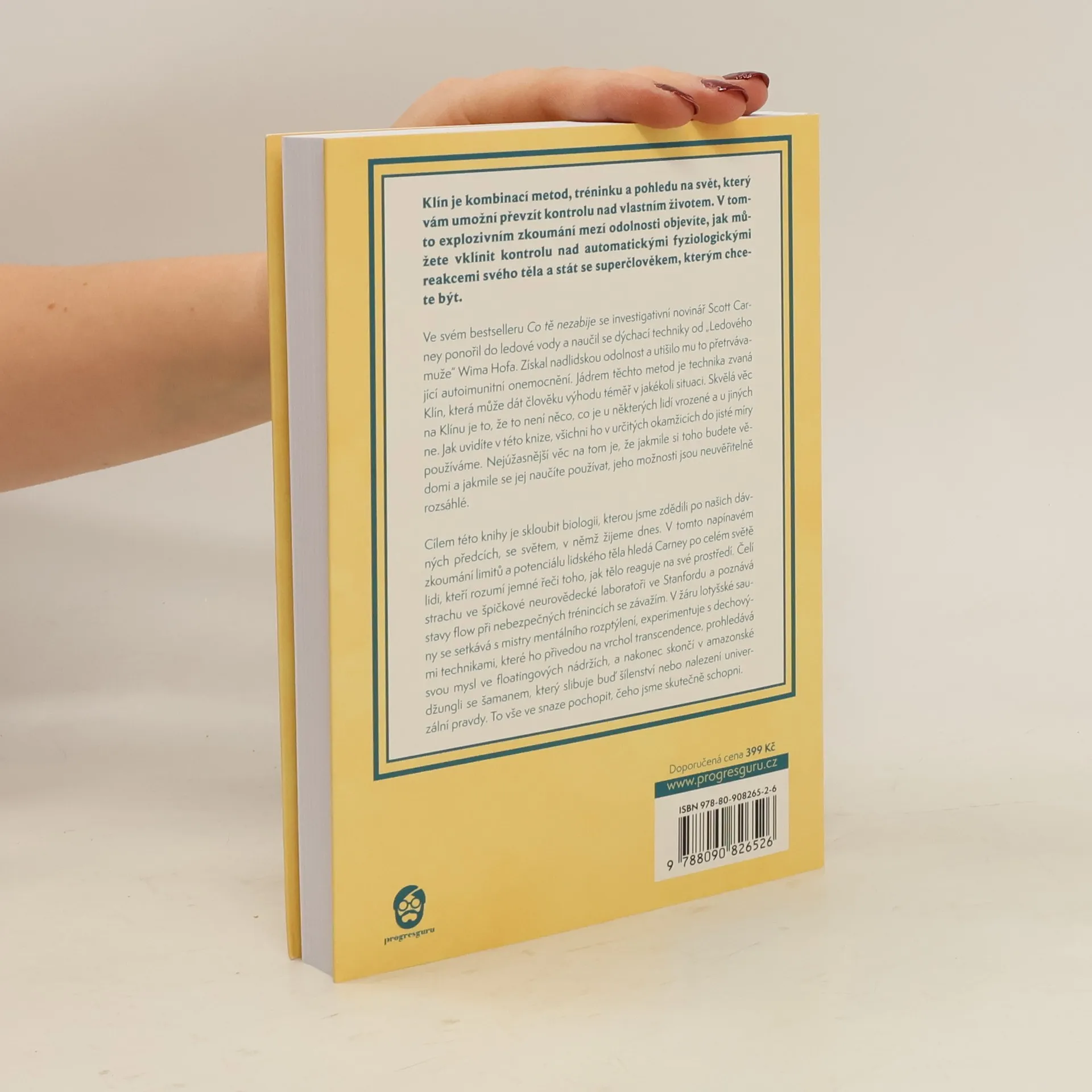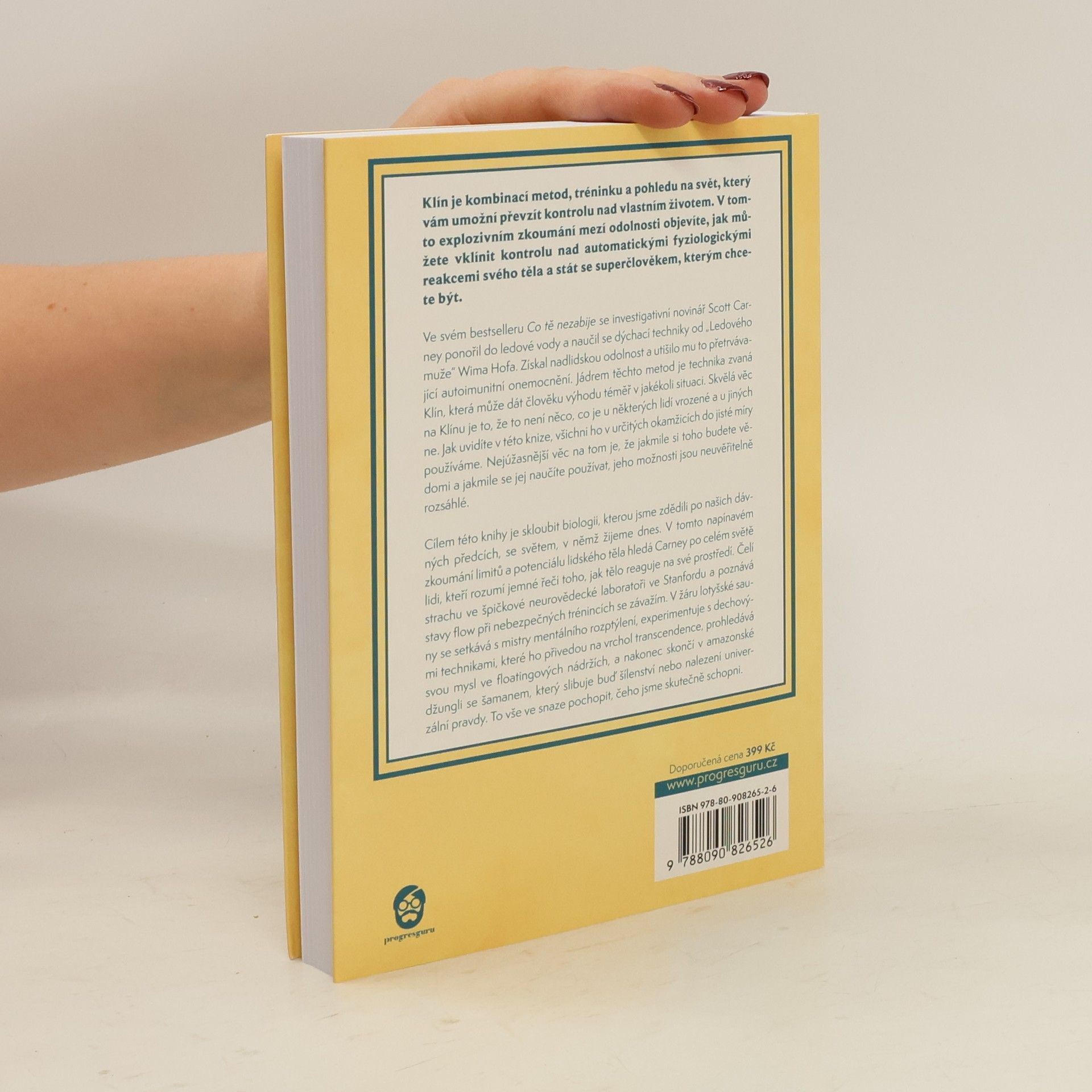 Klín kombinuje metody, trénink a pohled na svět, který vám umožní převzít kontrolu nad vlastním životem. V tomto zkoumání mezí odolnosti objevíte, jak ovládnout automatické fyziologické reakce těla a stát se superčlověkem. Investigativní novinář Scott Carney, autor bestselleru Co tě nezabije, se ponořil do ledové vody a naučil se dýchací techniky od „Ledového muže“ Wima Hofa, což mu přineslo nadlidskou odolnost a úlevu od autoimunitního onemocnění. Klín, technika, kterou Carney představuje, může poskytnout výhodu v různých situacích a není vrozená, ale dostupná pro každého. Jakmile se naučíte ji používat, její možnosti jsou široké. Cílem knihy je propojit biologii našich předků se současným světem. Carney na svých cestách po světě hledá lidi, kteří chápou, jak tělo reaguje na prostředí. Čelí strachu v neurovědecké laboratoři na Stanfordu, objevuje stavy flow při trénincích se závažím a setkává se s mistry mentálního rozptýlení v lotyšské sauně. Experimentuje s dechovými technikami, prozkoumává svou mysl ve floatingových nádržích a nakonec se dostává do amazonské džungle se šamanem, který slibuje buď šílenství, nebo nalezení univerzální pravdy. To vše ve snaze pochopit, čeho jsme skutečně schopni.