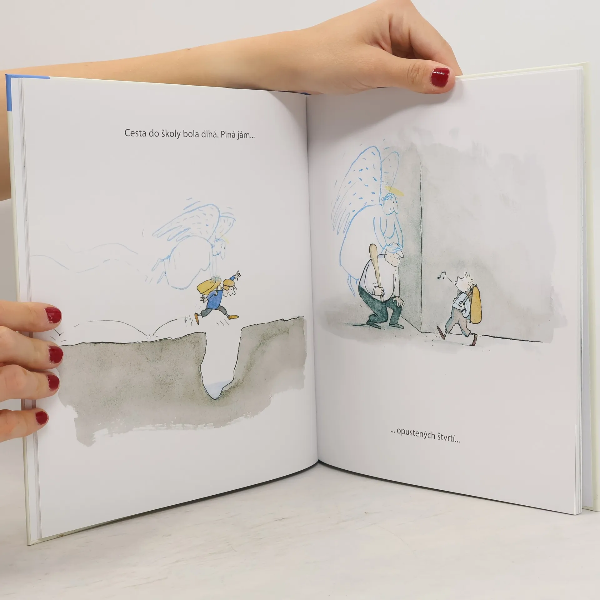 Mať dedka je vzácnosť. Mať dedka, ktorý si do podrobností pamätá, ako vyzeral život, keď bol sám malým chlapcom, je šťastie. A mať dedka, ktorý vnúčikovi porozpráva svoj vlastný príbeh o dospievaní, záhadnom zmiznutí či nečakanej radosti, je výnimočný dar. Tajomná socha anjela strážneho z námestia ožíva, a tento neviditeľný ochranca sa začne starať o to, aby bol v správny čas na správnom mieste. Príbeh skvele podčiarkujú autorkine jemné akvarelové ilustrácie. Jutta Bauer, držiteľka ceny H. C. Andersena, ponúka krehký, no zároveň silný príbeh o vďačnosti.