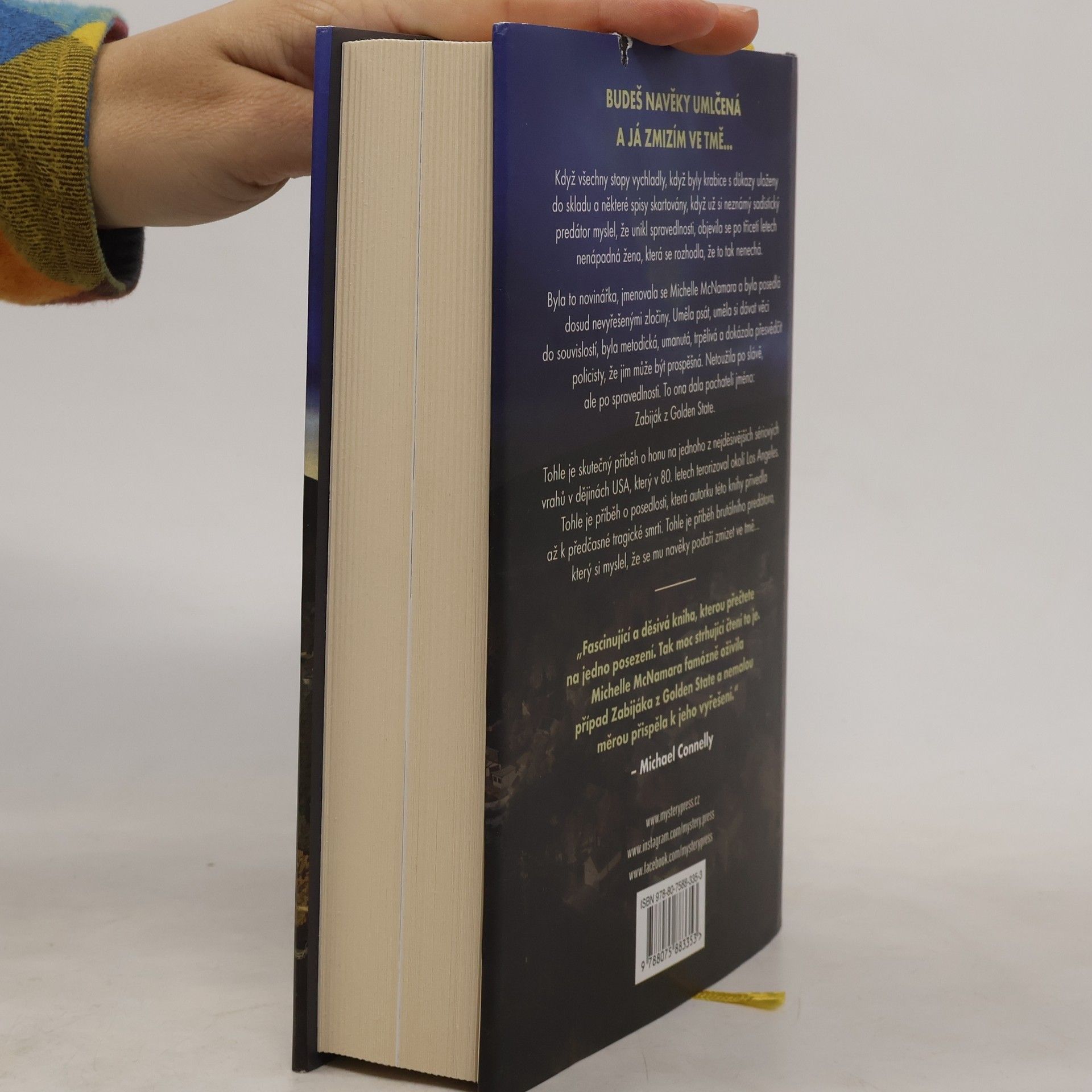 BUDEŠ NAVĚKY UMLČENÁ A JÁ ZMIZÍM VE TMĚ… Když všechny stopy vychladly, když byly krabice s důkazy uloženy do skladu a některé spisy skartovány, když už si neznámý sadistický predátor myslel, že unikl spravedlnosti, objevila se po třiceti letech nenápadná žena, která se rozhodla, že to tak nenechá. Byla to novinářka, jmenovala se Michelle McNamara a byla posedlá dosud nevyřešenými zločiny. Uměla psát, uměla si dávat věci do souvislostí, byla metodická, umanutá, trpělivá a dokázala přesvědčit policisty, že jim může být prospěšná. Netoužila po slávě, ale po spravedlnosti. To ona dala pachateli jméno: Zabiják z Golden State. Tohle je skutečný příběh o honu na jednoho z nejděsivějších sériových vrahů v dějinách USA, který v 80. letech terorizoval okolí Los Angeles. Tohle je příběh o posedlosti, která autorku této knihy přivedla až k předčasné tragické smrti. Tohle je příběh brutálního predátora, který si myslel, že se mu navěky podaří zmizet ve tmě… ________ Fascinující a děsivá kniha, kterou přečtete na jedno posezení. Tak moc strhující čtení to je. Michelle McNamara famózně oživila případ Zabijáka z Golden State a nemalou měrou přispěla k jeho vyřešení. – Michael Connelly