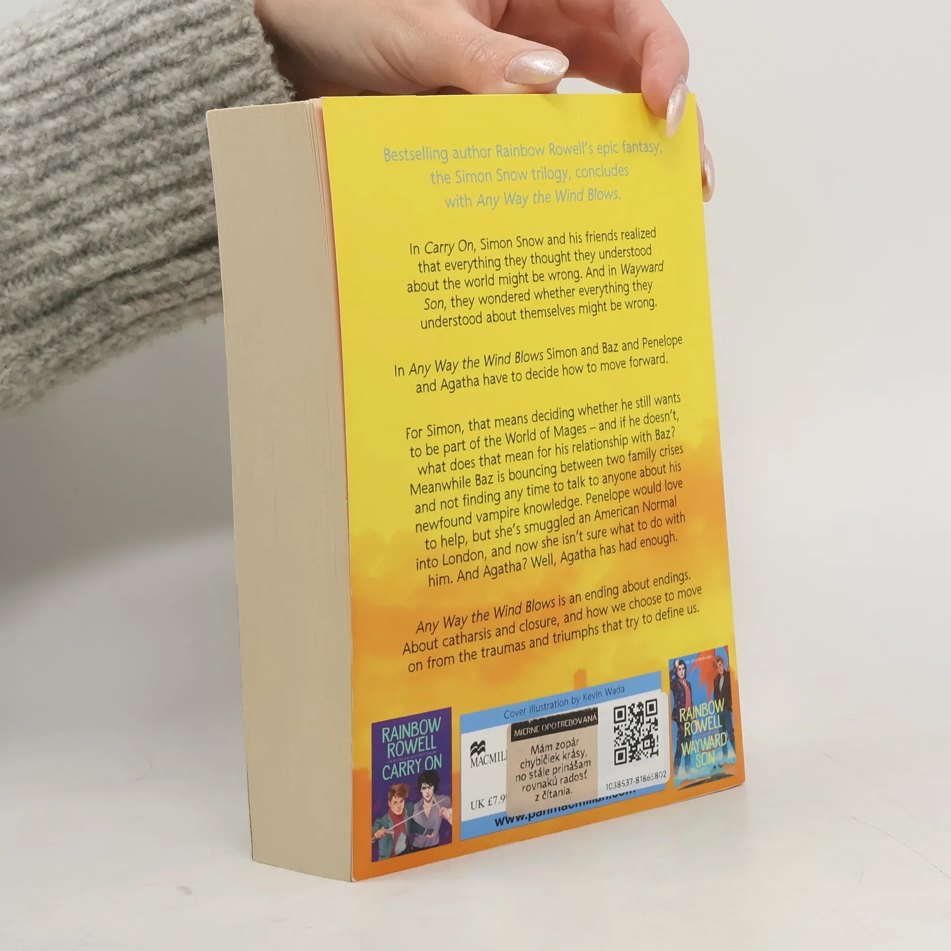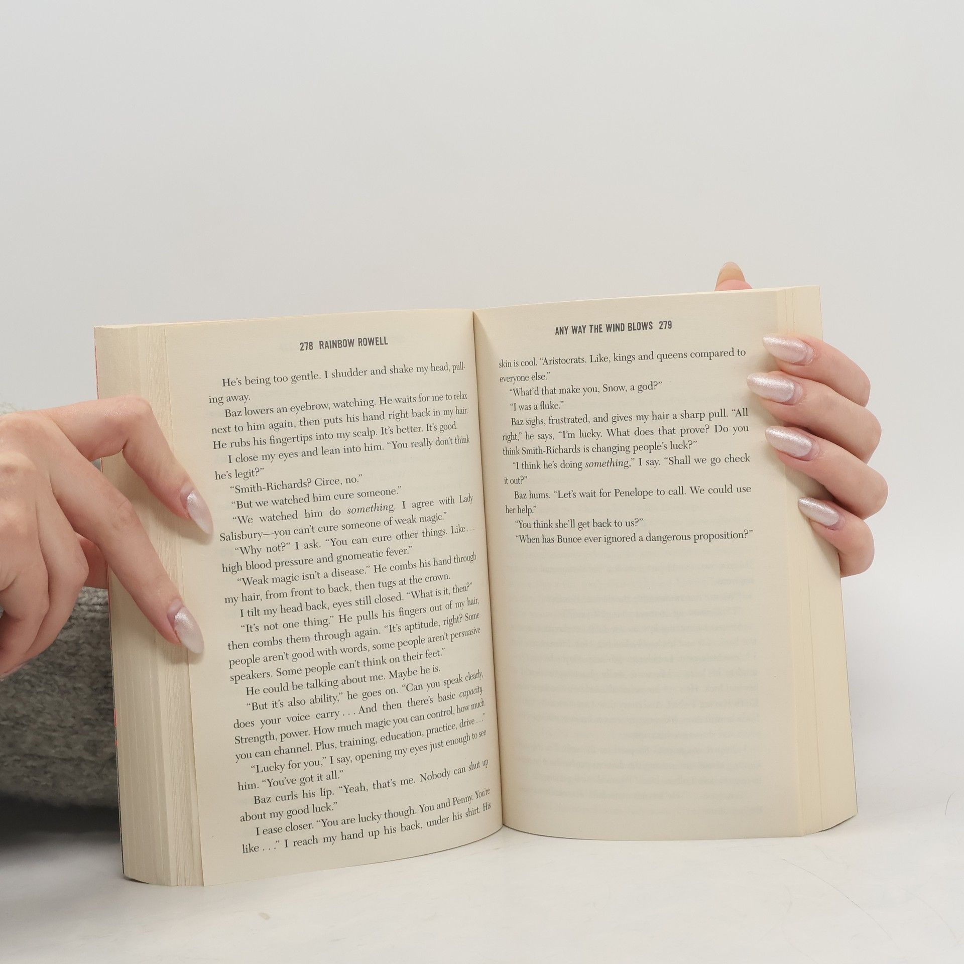 In Carry On, Simon Snow and his friends realized that everything they thought they understood about the world might be wrong. And in Wayward Son, they wondered whether everything they understood about themselves might be wrong. In Any Way the Wind Blows, Simon and Baz and Penelope and Agatha have to decide how to move forward. For Simon, that means deciding whether he still wants to be part of the World of Mages -- and if he doesn't, what does that mean for his relationship with Baz? Meanwhile Baz is bouncing between two family crises and not finding any time to talk to anyone about his newfound vampire knowledge. Penelope would love to help, but she's smuggled a cursed American Normal into London, and now she isn't sure what to do with him. And Agatha? Well, Agatha Wellbelove has had enough.