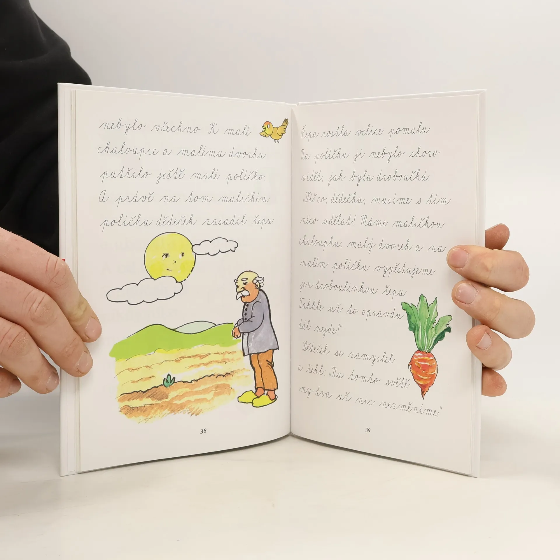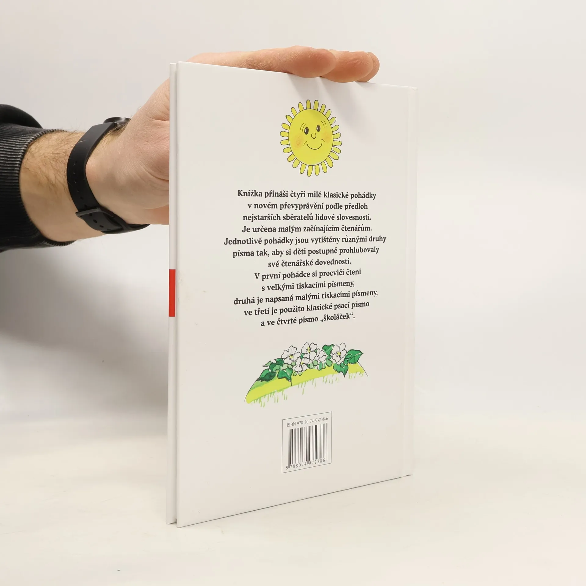 Knížka přináší čtyři milé klasické pohádky v novém převyprávění podle předloh nejstarších sběratelů lidové slovesnosti. Je určena malým začínajícím čtenářům. Jednotlivé pohádky jsou vytištěny různými druhy písma tak, aby si děti postupně prohlubovaly své čtenářské dovednosti. V první pohádce si procvičí čtení s velkými tiskacími písmeny, druhá je napsaná malými tiskacími písmeny, ve třetí je použito klasické psací písmo a ve čtvrté písmo „školáček“.