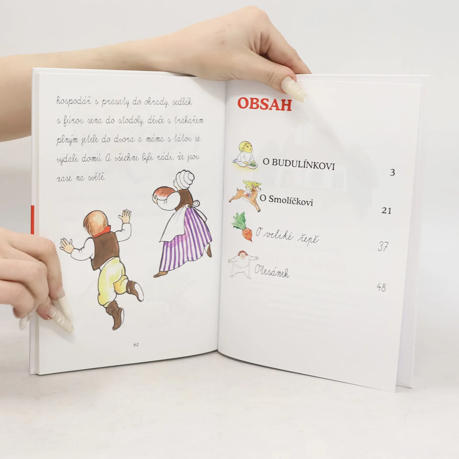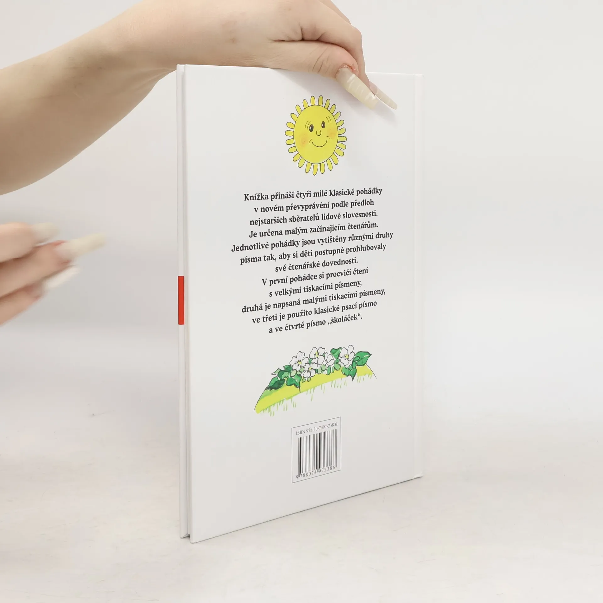 Knížka přináší čtyři milé klasické pohádky v novém převyprávění podle předloh nejstarších sběratelů lidové slovesnosti. Je určena malým začínajícím čtenářům. Jednotlivé pohádky jsou vytištěny různými druhy písma tak, aby si děti postupně prohlubovaly své čtenářské dovednosti. V první pohádce si procvičí čtení s velkými tiskacími písmeny, druhá je napsaná malými tiskacími písmeny, ve třetí je použito klasické psací písmo a ve čtvrté písmo „školáček“.