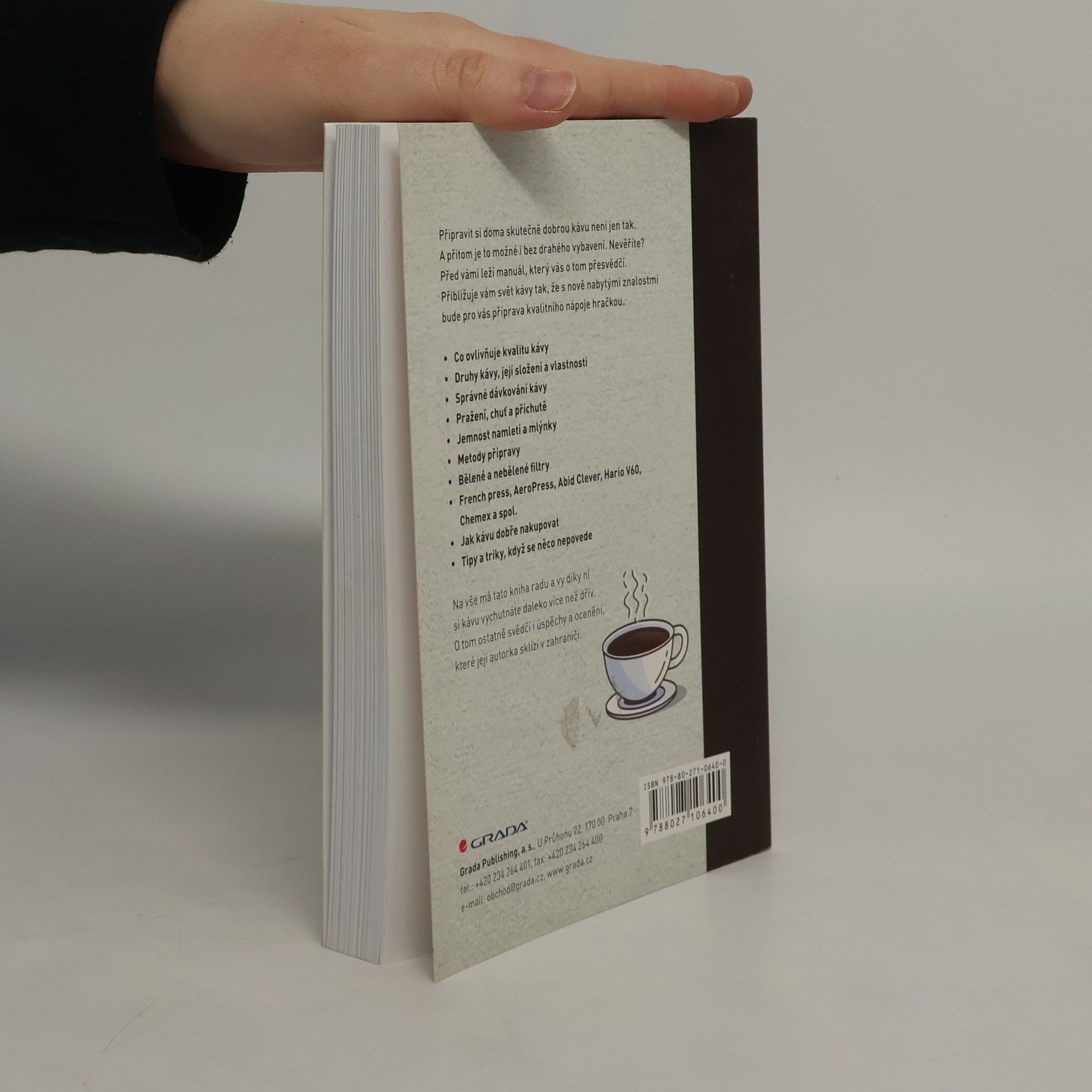 Autorka si s vysvětlováním, co všechno příprava chutné kávy obnáší, co je k tomu zapotřebí, dala neskutečnou práci a její výsledek stojí opravdu za to. O tom ostatně svědčí ohlasy a ocenění, které za knihu dostává. Dozvíte se například, co vše ovlivňuje kvalitu kávy, její sílu, hořkost, a naučíte se kávu správně kupovat, mlít, dávkovat, zalévat. Poučíte se o různých druzích kávy, které si můžete uvařit, a postupně se vyznáte v celé hitparádě nejrůznějších mlýnků, kávovarů, filtrů, konvic a dalších pomůcek, které nabízí náš trh. A nejen vyznat, vy se je naučíte i správně používat! Poznáte, jaké druhy kávy se pěstují, čím se od sebe navzájem odlišují, odkud se dovážejí. Budete umět rozlišovat jejich vlastnosti, aroma, chutě a příchutě. A na závěr se naučíte všelijaké triky, když se něco nepovede, uvařená káva je příliš slabá, nebo naopak příliš hořká, nebo se vám prostě povedlo koupit nekvalitní produkt. Na vše má tato kniha radu a vy díky ní budete mít požitek z pití kávy daleko větší než dříve.