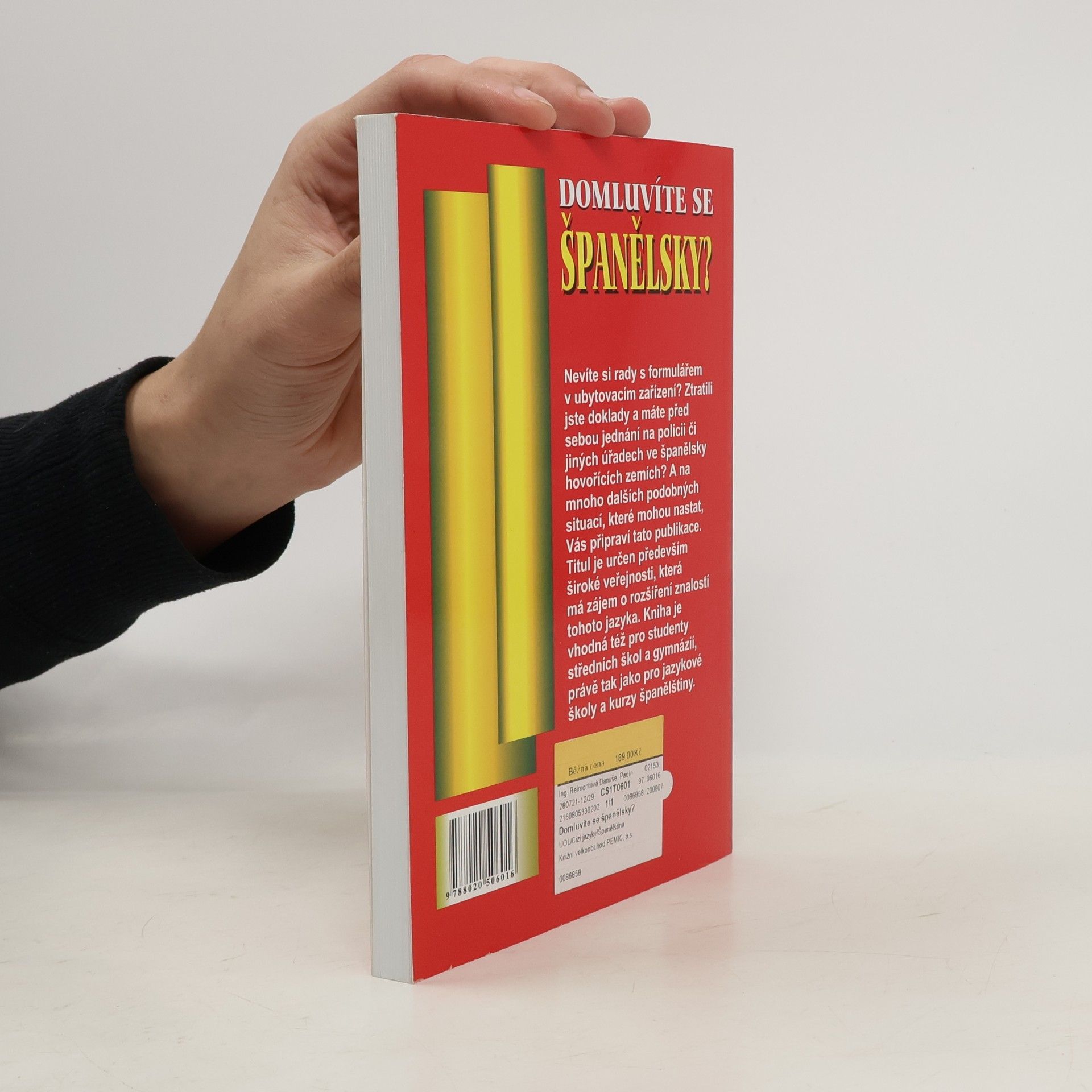 Nevíte si rady s formulářem v ubytovacím zařízení? Ztratili jste doklady a máte před sebou jednání na policii či jiných úřadech ve španělsky hovořících zemích? A na mnoho dalších podobných situací, které mohou nastat, Vás připraví tato publikace. Titul je určen především široké veřejnosti, která má zájem o rozšíření znalostí tohoto jazyka. Kniha je vhodná též pro pro studenty středních škol a gymnázií,právě tak jako pro jazykové školy a kurzy španělštiny.