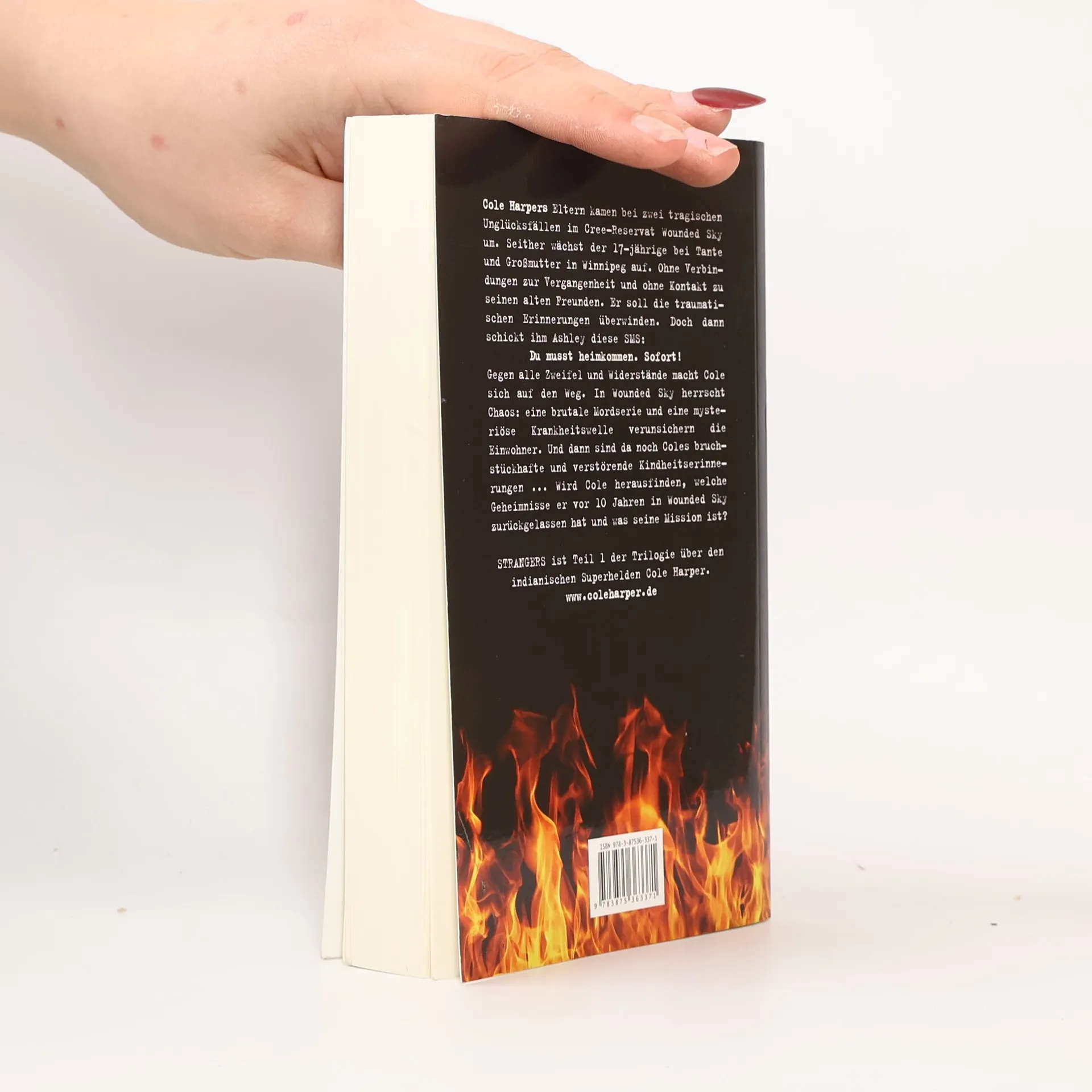 Nach zwei tragischen Unglücksfällen im Cree-Reservat Wounded Sky, bei denen auch seine beiden Eltern umkamen, wächst der 17-jährige Cole Harper bei Tante und Großmutter in Winnipeg auf. Cole soll sein Trauma überwinden und die Vergangenheit hinter sich lassen. Auch der Kontakt zu seinen drei engsten Freunden aus Kindertagen, Ashley, Brady und Eva, ist abgebrochen – bis Ashley ihn eines Morgens mit SMS „bombardiert“ und ihn auffordert, umgehend nach Wounded Sky zurück zu kommen. Gegen alle äußeren und inneren Widerstände macht Cole sich auf den Weg ... Aber was ist eigentlich in Wounded Sky los? Und inwiefern hat es mit Cole Harper zu tun? Wer ist der rätselhafte Choch und was hat es mit der brennenden Jayne auf sich? Mit Cole Harpers Rückkehr nach Wounded Sky beginnt ein spannendes und nicht ganz ungefährliches Abenteuer. Und nur sehr langsam gelingt es Cole, seine bruchstückhaften Kindheits-Erinnerungen und die bedrohlichen Ereignisse der Gegenwart zusammenzufügen und Licht in seine Mission zu bringen ... David A. Robertson hat mit seiner Cole-Harper-Trilogie nicht nur einen spannenden Thriller geschrieben. Er hat mit Cole Harper einen jugendlichen Protagonisten geschaffen, der peu à peu und durch die Rückkehr zu seinen Wurzeln seine psychischen Verletzungen überwindet und lernt, sich als der, der er ist, zu akzeptieren und in die Gemeinschaft zu integrieren. "Strangers" ist der erste Teil der Cole-Harper-Trilogie.