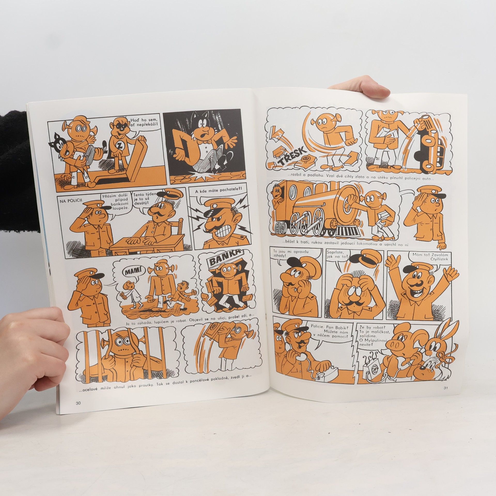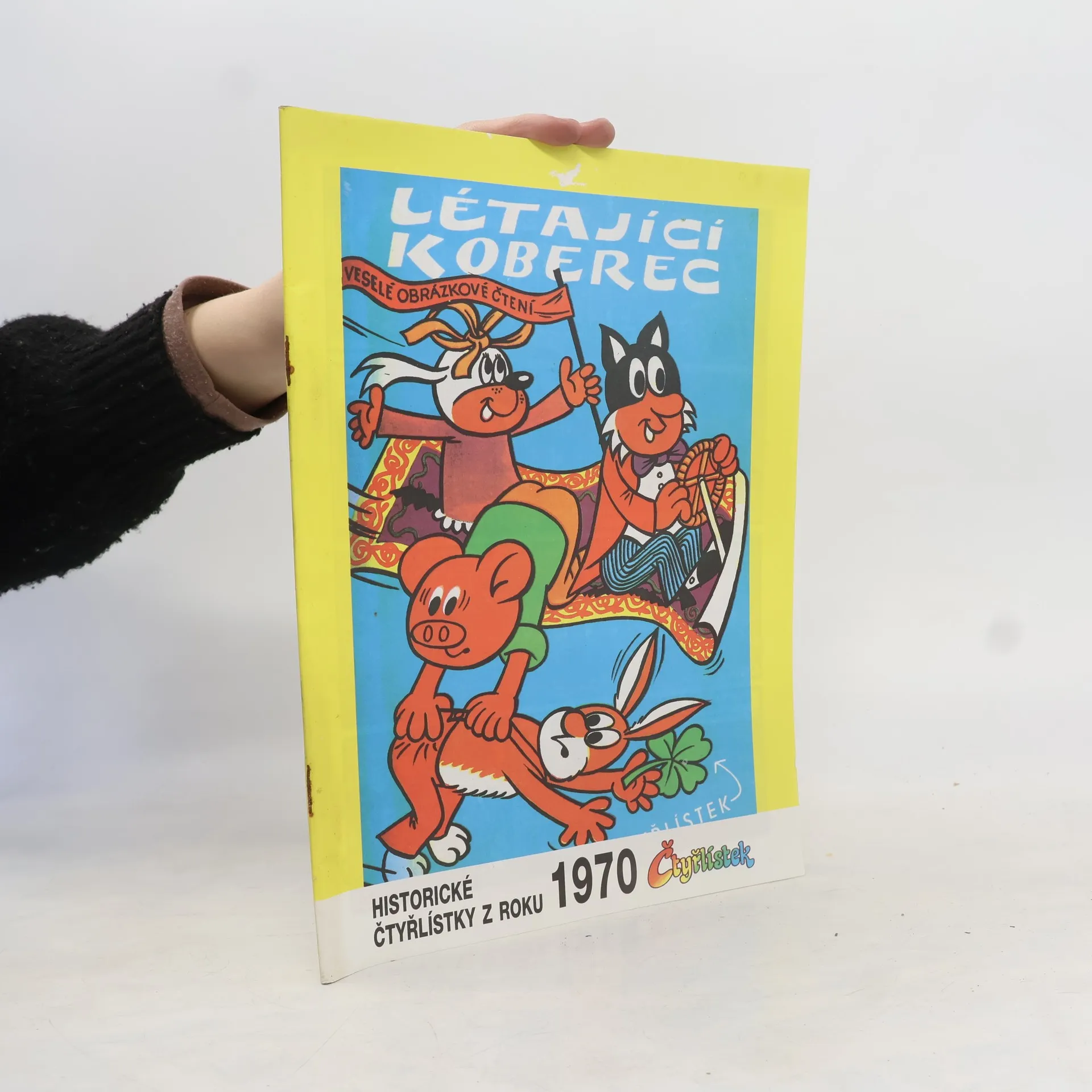 Historické Čtyřlístky z roku 1970. Druhé upravené vydání osmého a sedmého čísla magazínu Čtyřlístek v jednom sešitě. Létající koberec Za Fifinkou k Ježibabě - Dagmar Vránová, Jaroslav Němeček Za Pinďou k Šípkové Růžence - Dagmar Vránová, Jaroslav Němeček Za Bobíkem do Čertova mlýna - Dagmar Vránová, Jaroslav Němeček Za Myšpulínem na zápas s drakem - Dagmar Vránová, Jaroslav Němeček Velké dobrodružství Čtyřlístku - Ljuba Štíplová, Jaroslav Němeček