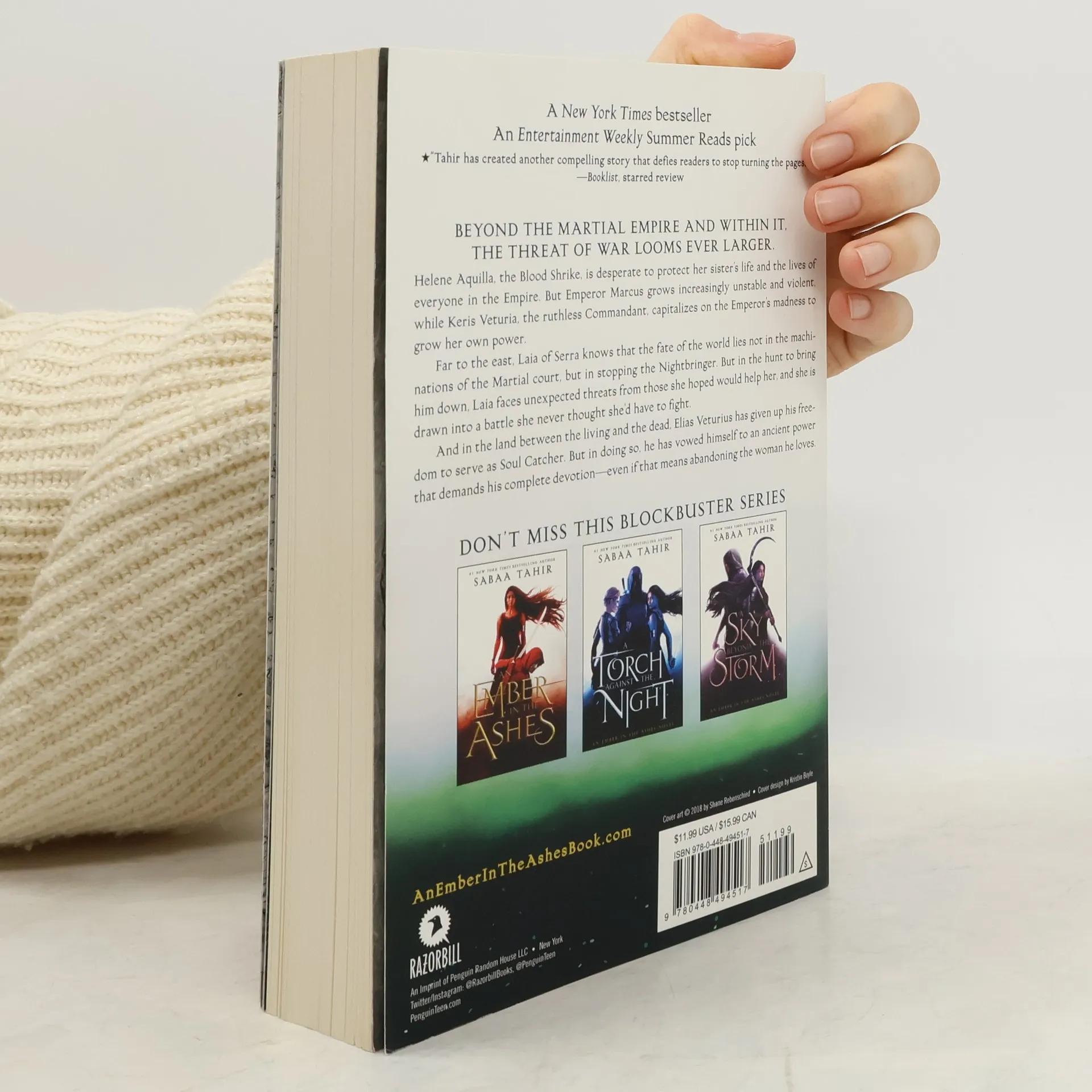 BOOK THREE IN THE NEW YORK TIMES BESTSELLING SERIES • An Entertainment Weekly Summer Reads pick! A gorgeous, collectable look for this beloved and bestselling fantasy series that “glows, burns, and smolders.” (Huffington Post). The deluxe paperback editions each feature tip-ins with exclusive character art! Beyond the Martial Empire and within it, the threat of war looms ever larger. Helene Aquilla, the Blood Shrike, is desperate to protect her sister's life and the lives of everyone in the Empire. But she knows that danger lurks on all sides: Emperor Marcus, haunted by his past, grows increasingly unstable and violent, while Keris Veturia, the ruthless Commandant, capitalizes on the Emperor's volatility to grow her own power—regardless of the carnage she leaves in her path. Far to the east, Laia of Serra knows the fate of the world lies not in the machinations of the Martial court, but in stopping the Nightbringer. But in the hunt to bring him down, Laia faces unexpected threats from those she hoped would help her, and is drawn into a battle she never thought she'd have to fight. And in the land between the living and the dead, Elias Veturius has given up his freedom to serve as Soul Catcher. But in doing so, he has vowed himself to an ancient power that demands his complete surrender—even if that means abandoning the woman he loves.