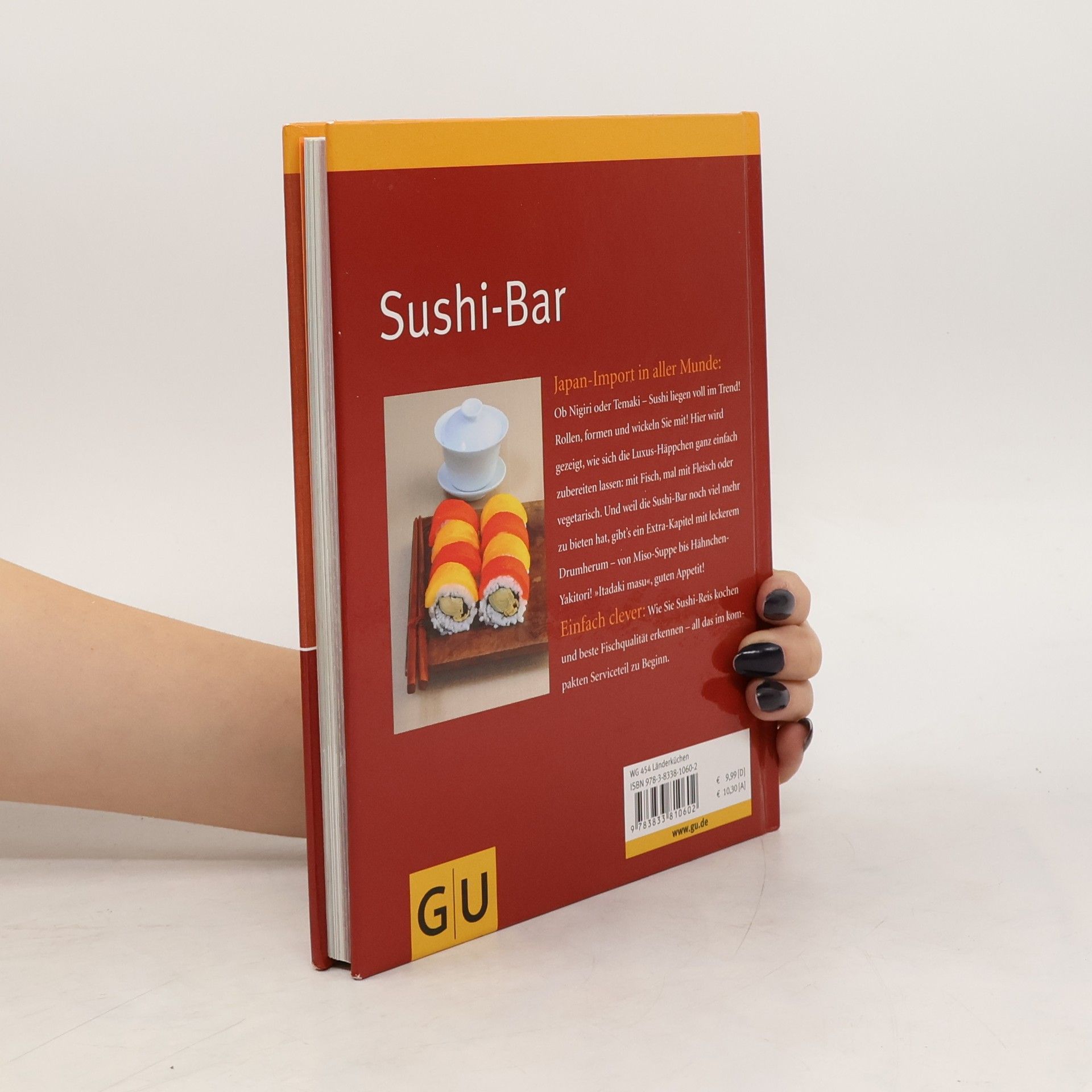 Nigiri, Futo- und Hosomaki oder gar Yakitori? Wer hier nur Bahnhof versteht, sollte in Sushi-Bar aus der GU-Hardcoverreihe Einfach clever schauen - denn darin wird vollständig auf umständliches Küchen-Japanisch verzichtet. Vielmehr wird gezeigt, wie sich Sushi zu Hause ganz einfach zubereiten lassen. Mit anschaulichen Anleitungen für Fischzuschnitte und profimäßiger Rolltechnik gelingen nicht nur alle Klassiker, sondern auch die vielen neuen Kreationen. Dann bleibt nur noch die Wahl, ob mit Fisch, mal mit Fleisch oder vegetarisch, ob Sushi mit 5-Gewürz-Ente, scharfem Thunfischtatar oder Paprika-Omelette. Und wer mal keine Lust auf (nur) Reisröllchen hat, wählt einen der anderen leckeren Asia-Snacks, die die Sushi-Bar zu bieten hat: von japanischen Nudelsuppen über leckere Yakitori-Spießchen bis hin zu Chinakohlröllchen mit Tofufüllung. So lautet das einzige japanische Wort, das man noch lernen muss „Itadaki masu“ - ganz einfach: Guten Appetit.