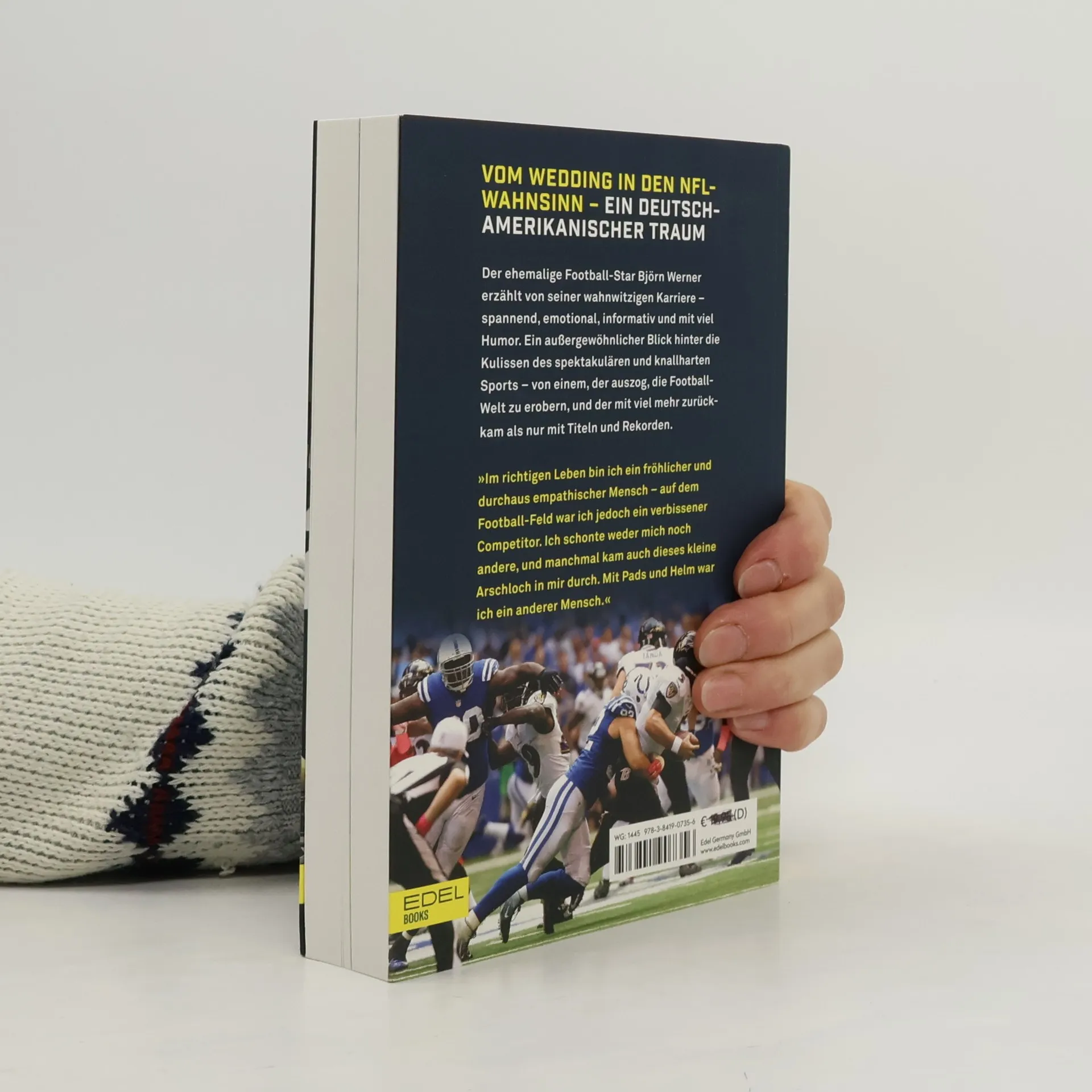 Mit 16 geht Björn Werner aus Berlin in die USA, um an einer High School American Football zu spielen. Wie jeder sportbegeisterte Jugendliche träumt er von einer Profi-Karriere – und schafft es am Ende tatsächlich bis in die weltberühmte National Football League (NFL). Wie sein atemberaubender Aufstieg aus einfachen Verhältnissen in die Weltspitze gelang, welche Hindernisse es zu überwinden galt und was es heißt, auf höchstem Niveau in der größten Liga der Welt zu spielen, davon berichtet er erstmals in diesem Buch. Er erzählt offen und schonungslos, aber auch mit viel Humor, von Triumphen und Tiefschlägen, vom Leben in den USA, dem Glanz und den Schattenseiten der NFL, die vor allem eines ist: ein knallhartes Milliarden-Business. Er schildert, wie er durch Verletzungen gestoppt wurde und mit nur 26 Jahren seine Karriere beenden musste. Heute ist Björn Werner eines der bekanntesten Gesichter des American Football in Deutschland, arbeitet als TV-Experte und internationaler Talentscout. Gemeinsam mit Patrick Esume ist er Host des erfolgreichsten deutschen Sport-Podcasts „Football Bromance“.