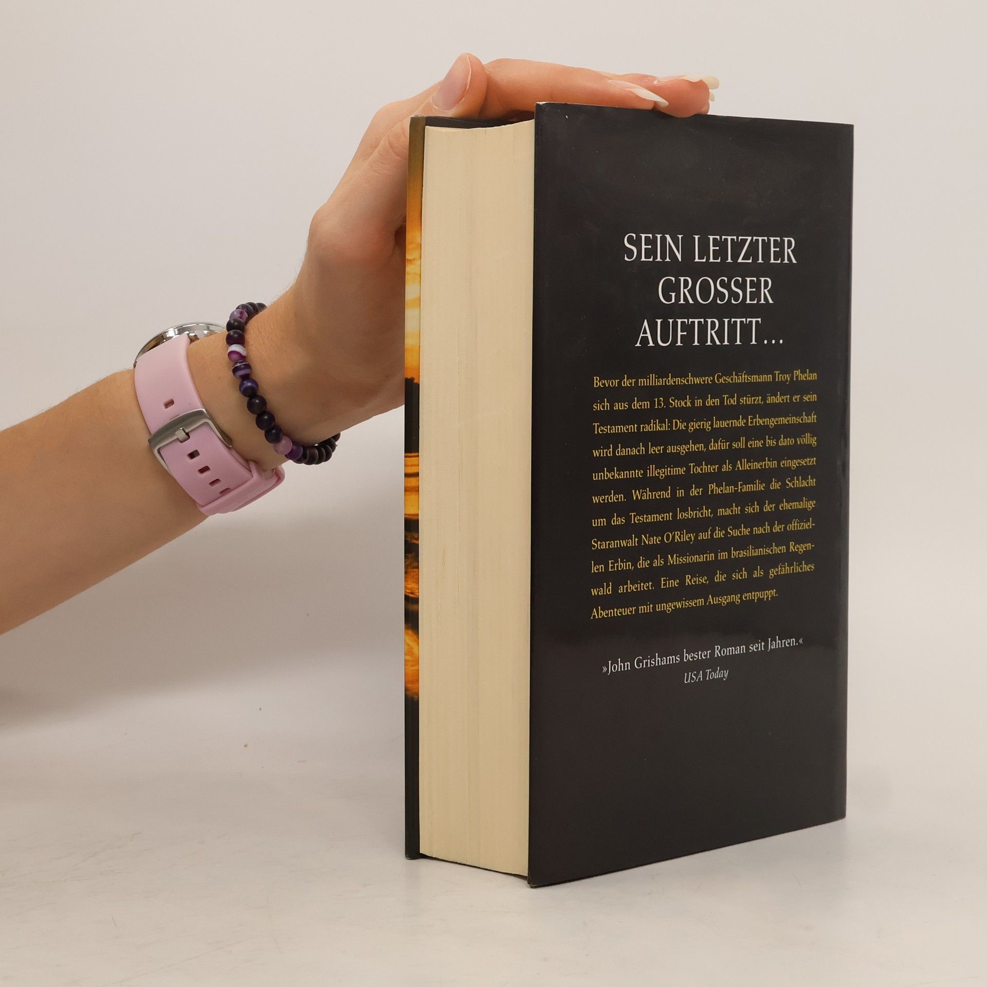 Ein milliardenschwerer, lebensmüder Geschäftsmann, eine gierig lauernde Erbengemeinschaft, die im brasilianischen Regenwald arbeitende Missionarin Rachel und ein ehemaliger Staranwalt, der es noch einmal wissen will - das sind die Akteure im Testament. Es geht um Geld, Macht und Ehre, und es geht um Leben und Tod.