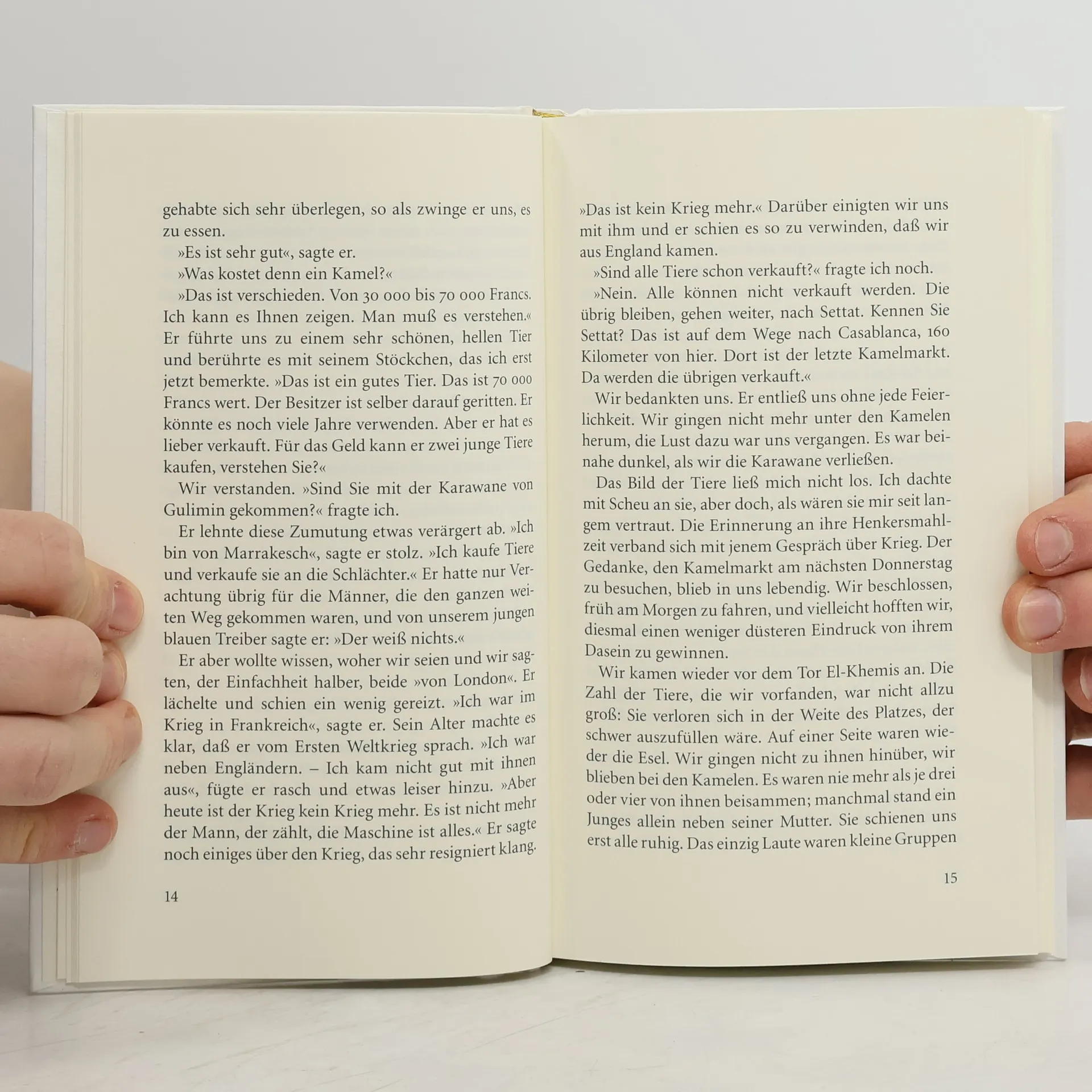 Der Zufall führte Canetti 1954 als Begleiter eines Filmteams in ein bestürzend fremdartiges Land - nach Marrakesch. Erst aus der Distanz, nach seiner Rückkehr nach London, skizzierte er die Eindrücke dieser Reise. Die Aufzeichnungen sind kein Reisebericht im klassischen Sinn. Es sind Miniaturen von atmosphärischen Erscheinungen einer orientalischen Großstadt. Elias Canetti streift durch die arabischen und jüdischen Viertel der Stadt, atmet die seltsamen Gerüche, beobachtet die feilschenden Händler in den Suks und die Verkäuferinnen duftenden Brotes, vernimmt die Stimmen der Blinden, Bettler und zungenlosen Krüppel in den Slums, spürt die hilflose Kreatürlichkeit und Nähe des Todes vor den Kamelen mit ihren Schlächtern, staunt über die vielen Gesichter armer Juden in der Mellah, wird Zeuge intimster menschlicherVerhältnisse, sieht Bosheit, Armut und Prostitution und spürt nur die Sehnsucht, die Sehnsucht nach einem besseren Leben.